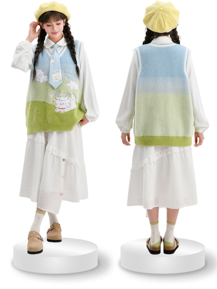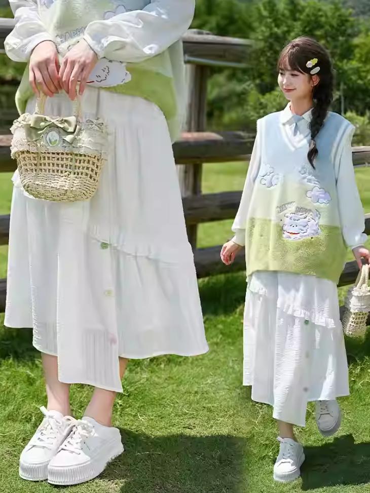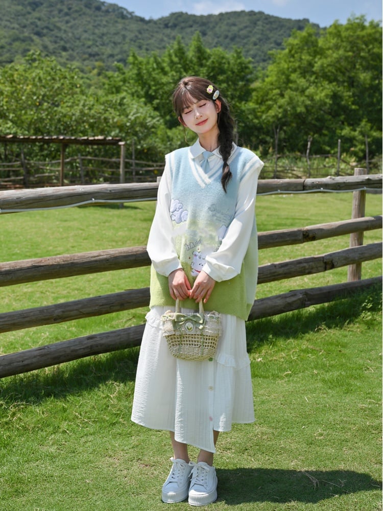 青と白のオールドスクールロリータファッションドレス 蝶結びディテール JSK セット