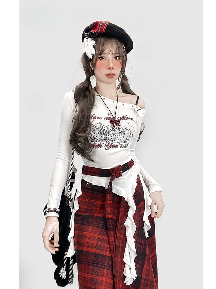 アシンメトリーな裾とスリムフィットのデザインが特徴のキュートなホワイトトップス。ワードローブに個性的なスタイルをプラスするのにぴったりです。
