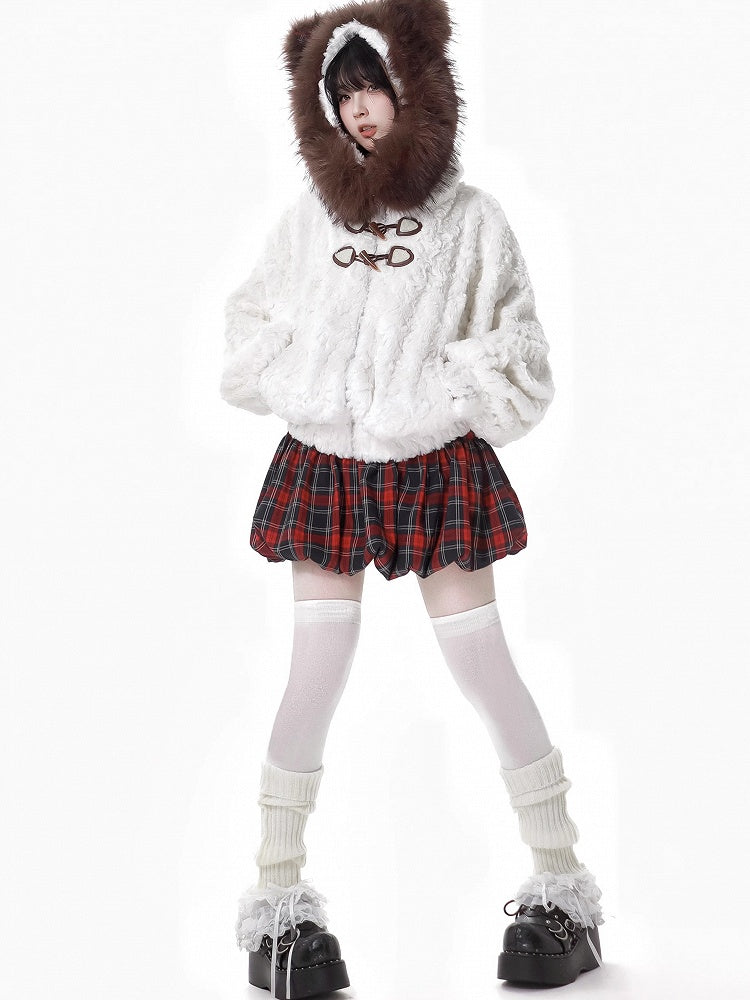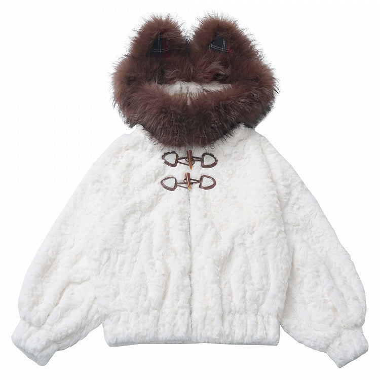 ホワイトベアの耳が付いたフード付きプラッシュコートで、暖かく可愛く過ごしましょう。肌寒い日にぴったりの、キュートなベアの耳と柔らかな素材が、暖かくスタイリッシュにあなたを包み込みます。このコートで、キュートで快適な毎日をお過ごしください!