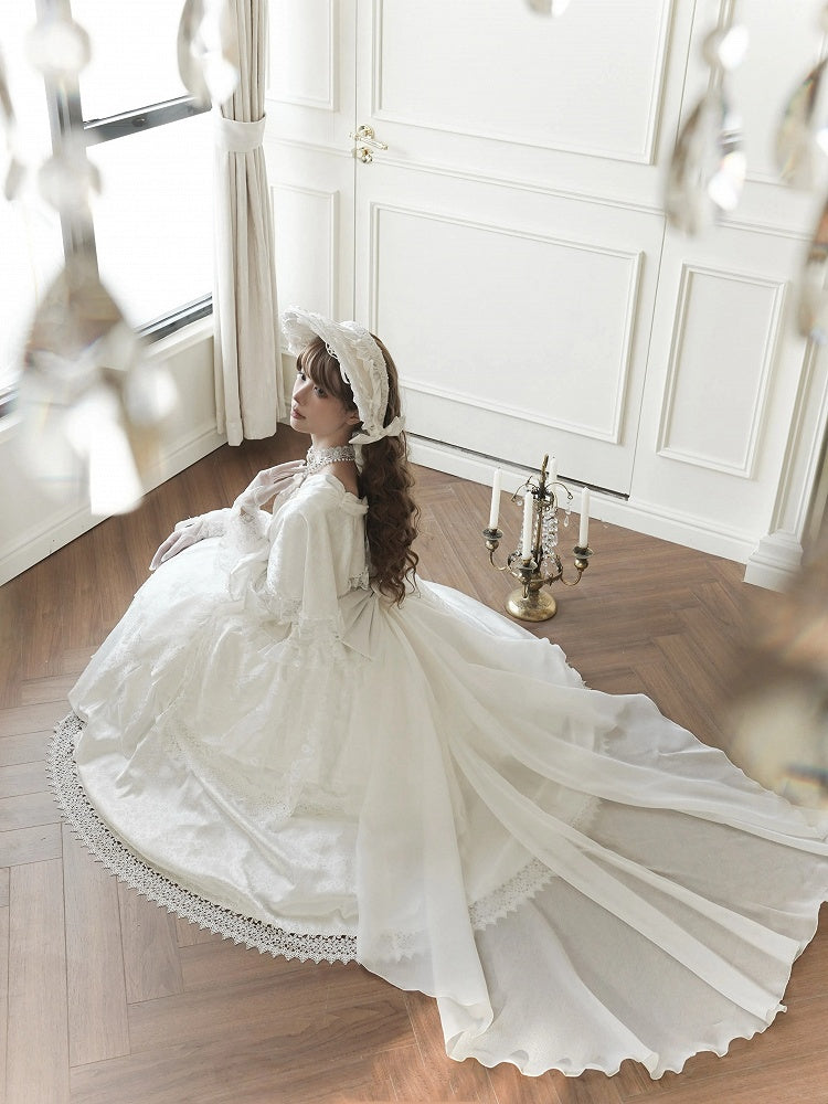 青と白のオールドスクールロリータファッションドレス 蝶結びディテール JSK セット