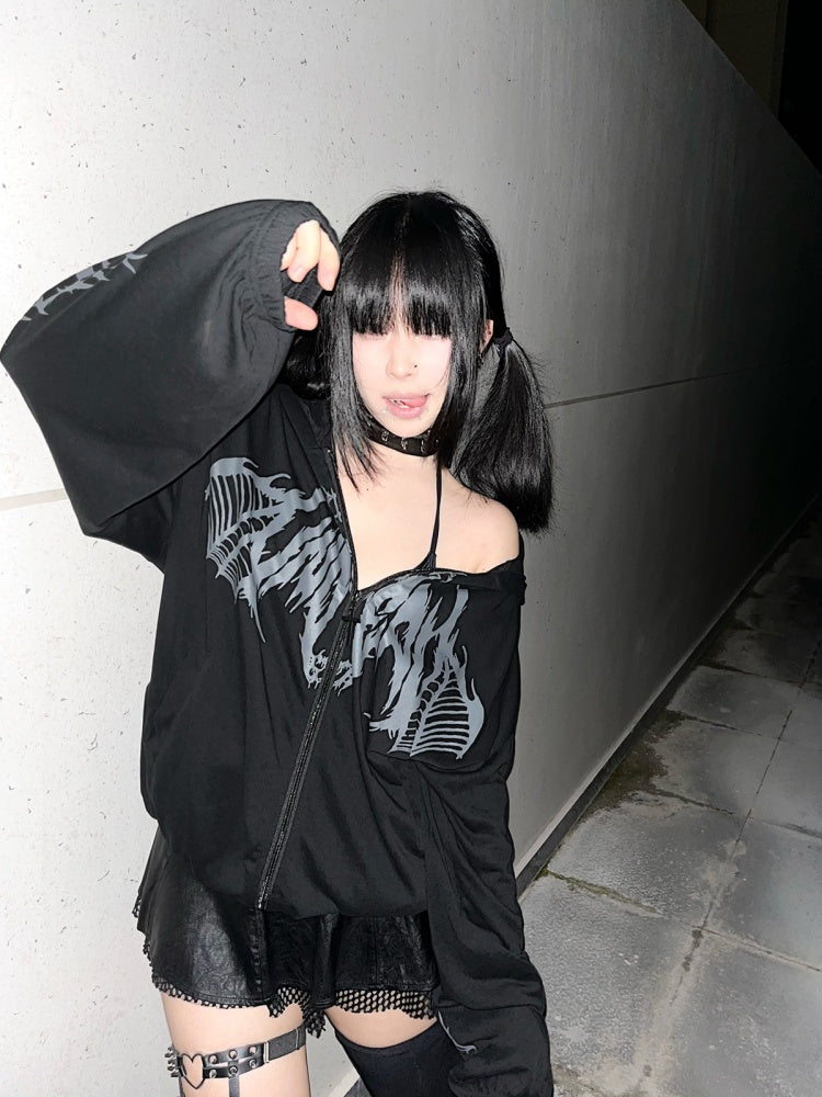ホワイト ブラック ブルー 日焼け防止 Y2K フード付きジャケット