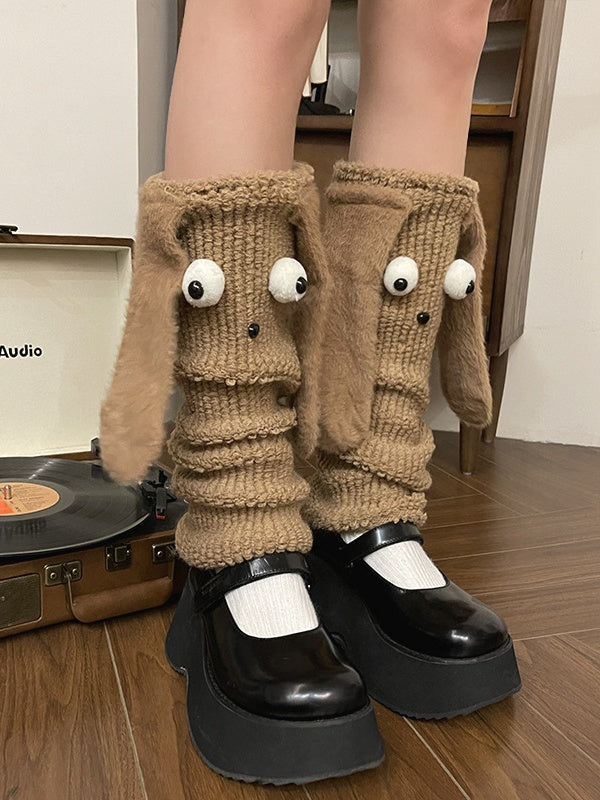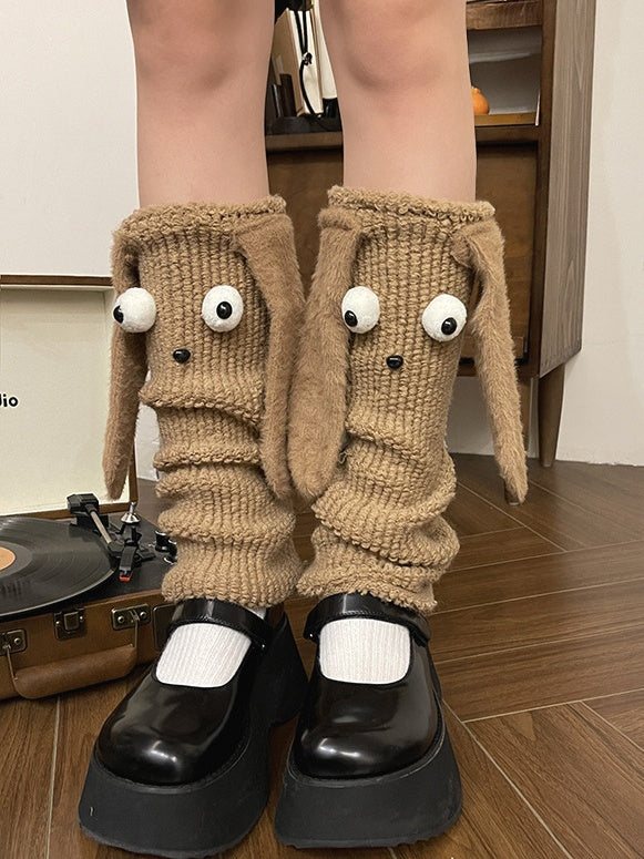 ホワイト/ブラック/ブラウンのスイートパピーイヤープラッシュレッグウォーマー
