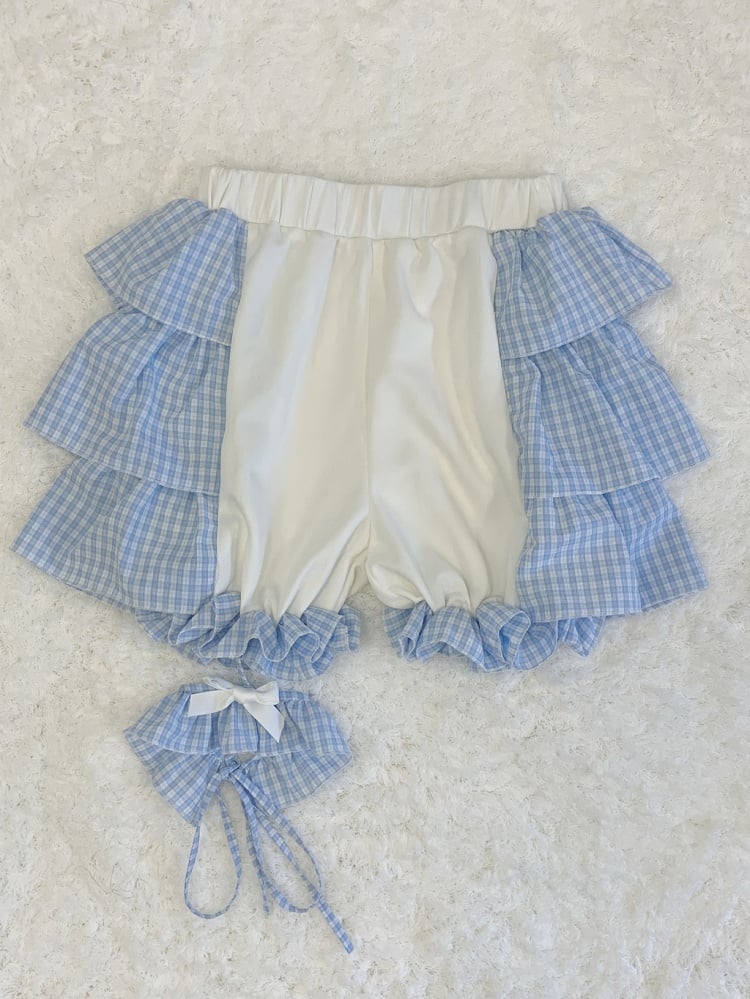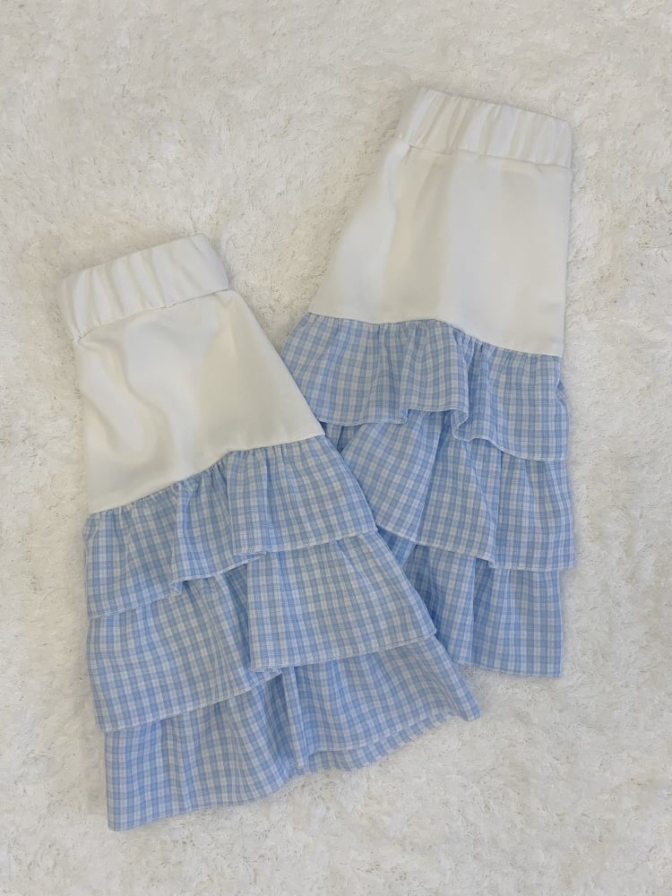 ホワイトブルーチェック柄うさぎ耳フルセット