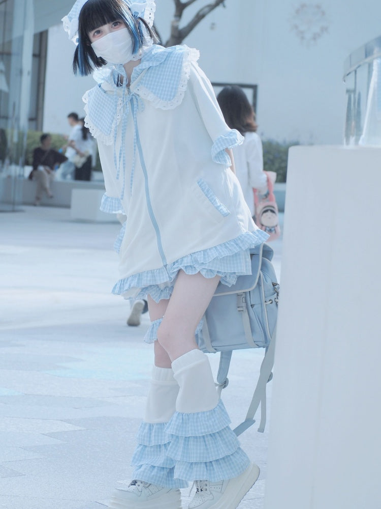 ホワイトブルーのチェック柄ティアードレッグスリーブで、装いに華やかさをプラス。ティアードデザインとクラシックなチェック柄が特徴の可愛らしいレッグスリーブは、どんな装いにもキュートさをプラスしてくれる完璧なアクセサリーです。レッグスリーブでスタイリッシュかつシックに!