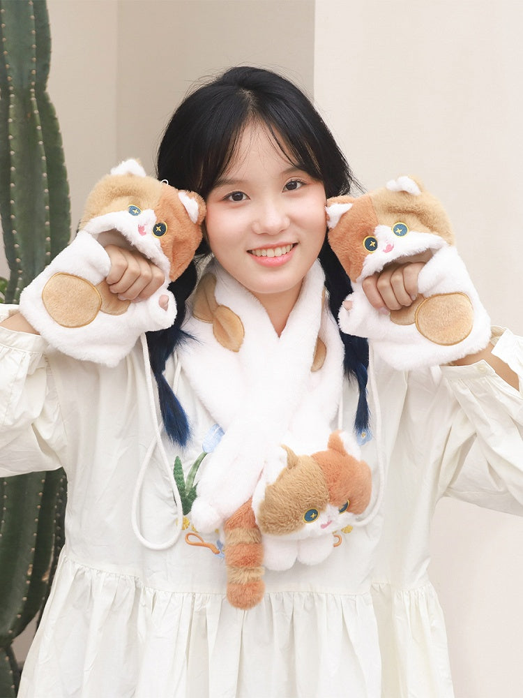 ホワイト&ブラウンのかわいい猫型ぬいぐるみ手袋