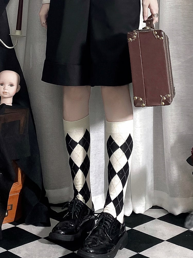 ホワイトカーフ&パターンブラックソックスダイヤモンド