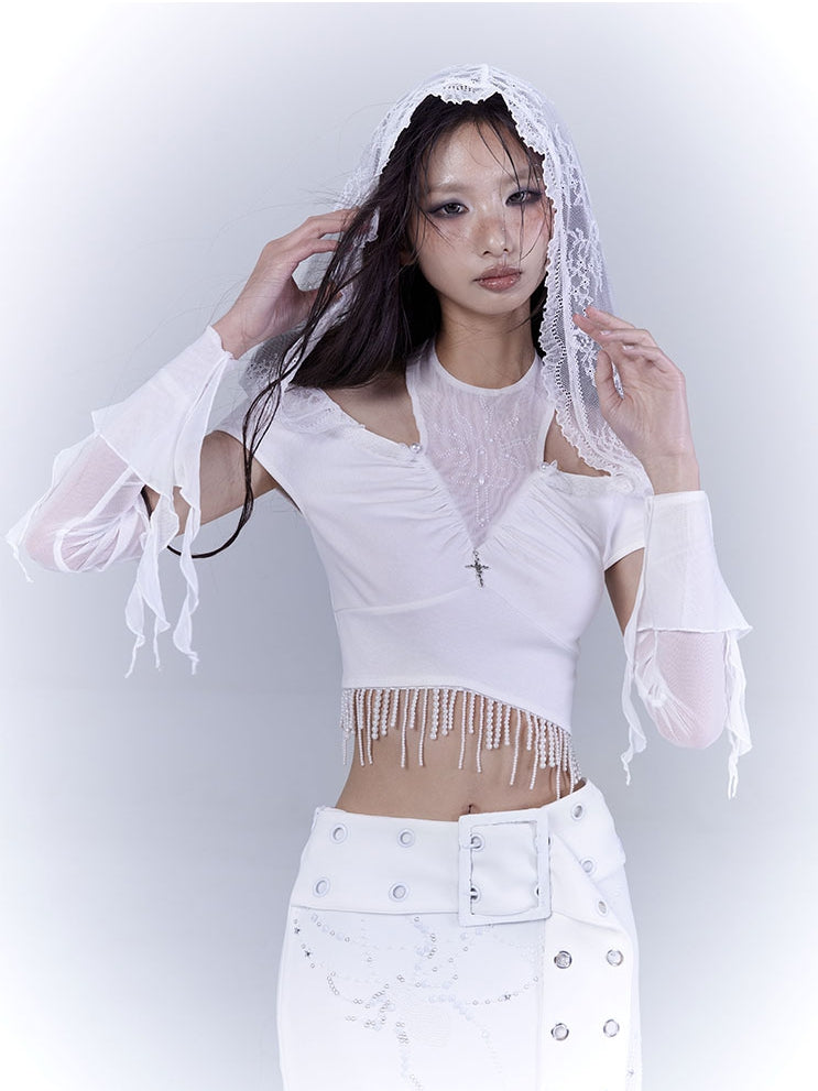 青と白のオールドスクールロリータファッションドレス 蝶結びディテール JSK セット