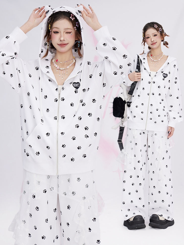 愛らしい白猫の足跡をあしらったストレートレッグカットのカジュアルパンツは、ワードローブにキュートなアクセントを添えてくれます。上質な素材を使用し、柔らかく快適な着心地を実現。ストレートレッグカットはリラックスしたフィット感で、普段使いにぴったりです。この愛らしいパンツで、個性をアピールしましょう。