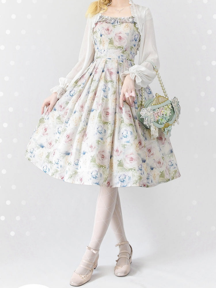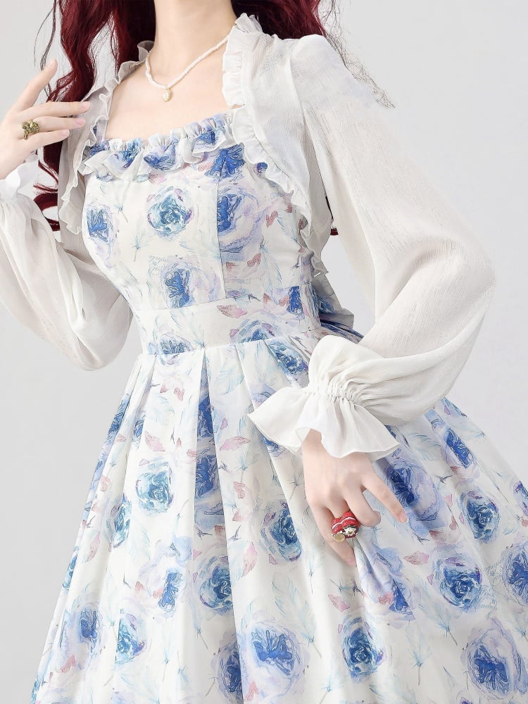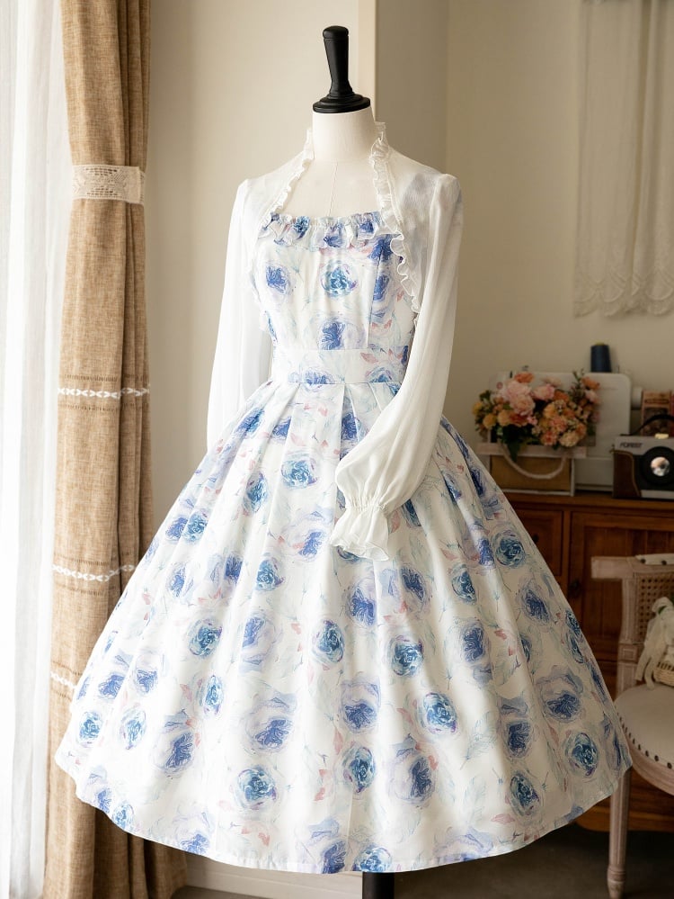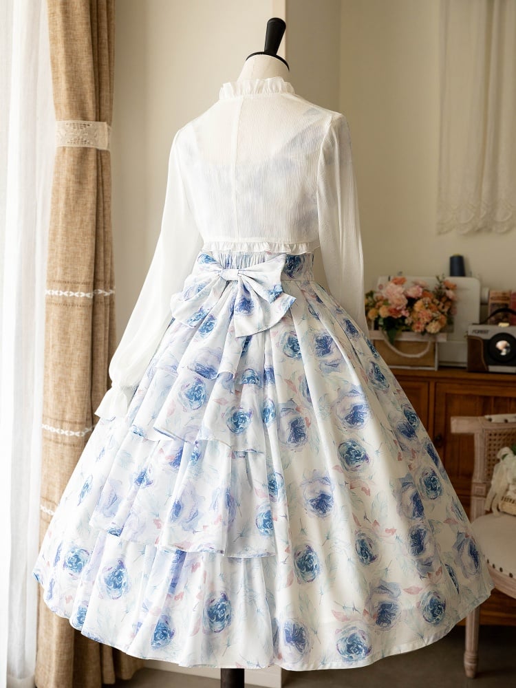 青と白のオールドスクールロリータファッションドレス 蝶結びディテール JSK セット