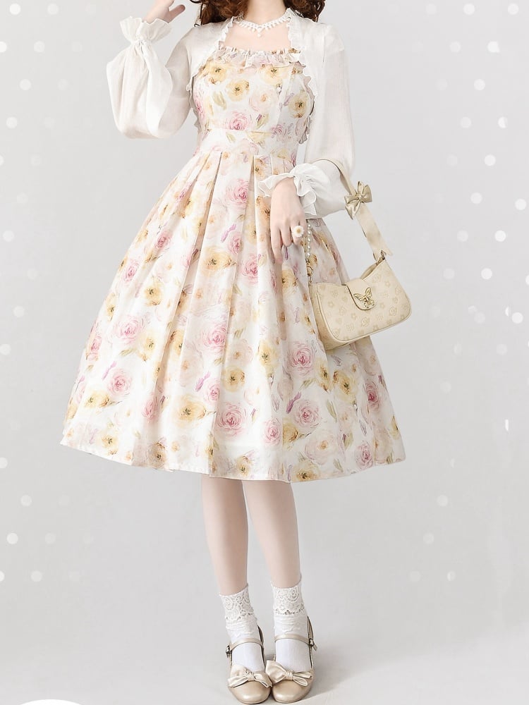 ピンクと白のオールドスクールロリータファッションドレス、蝶結びディテール、ロリータJSKセット