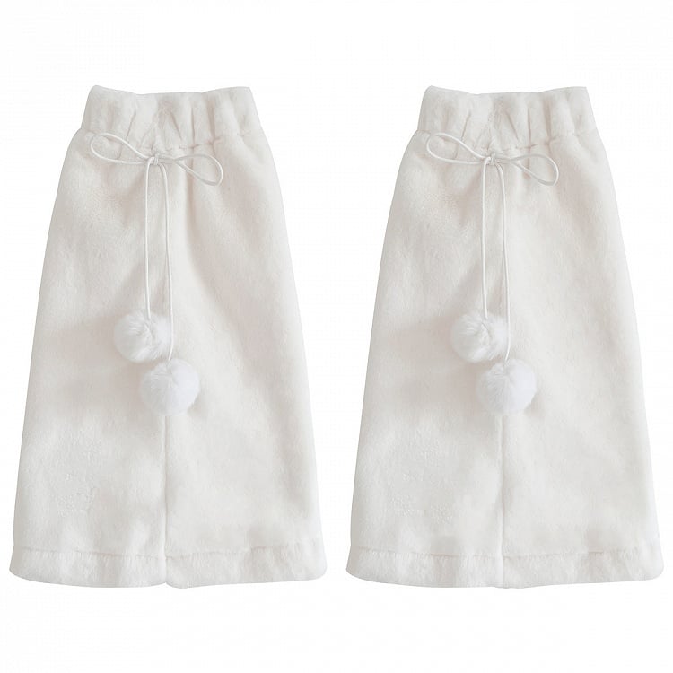 ホワイトの心地よいプラッシュレッグウォーマー
