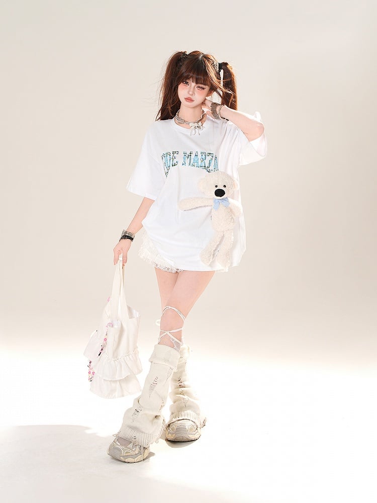 ホワイトの伸縮性ウエスト、レーストリムのミニティアードプリーツスカートとグレー