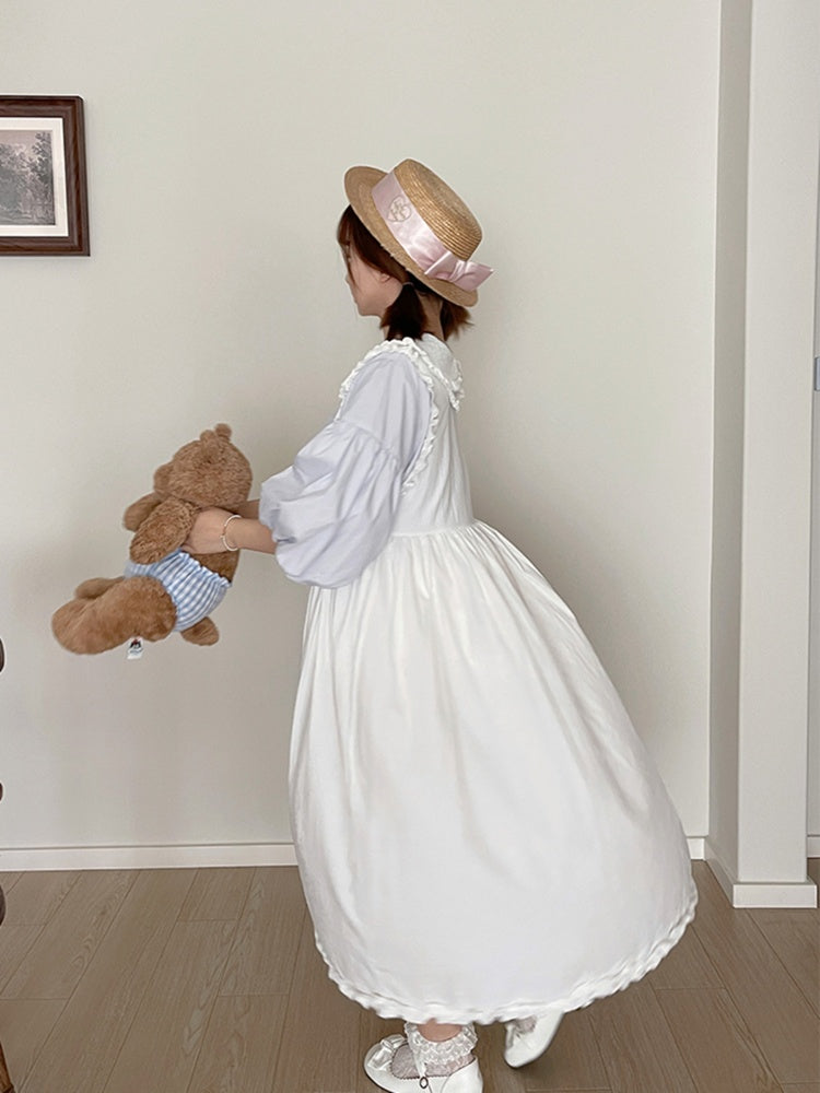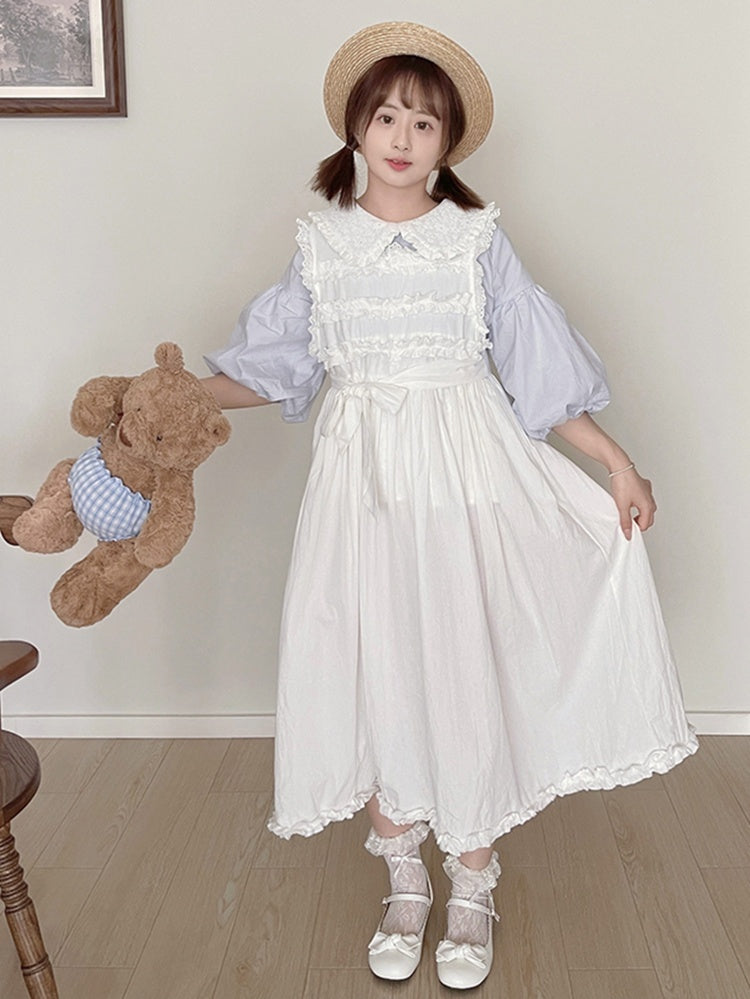 青と白のオールドスクールロリータファッションドレス 蝶結びディテール JSK セット