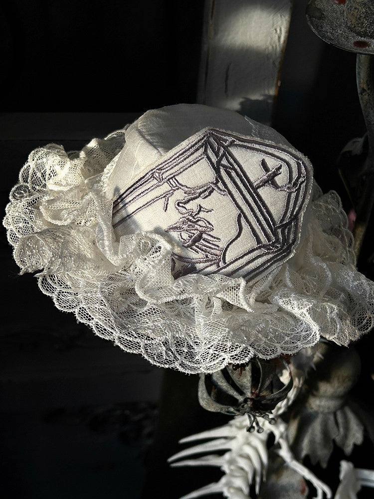 キュートでチャーミングなホワイトゴシックロリータの墓石刺繍ハットに、きっとご満足いただけるはずです。ユニークな墓石刺繍が施されたこのハットは、きっと注目を集めることでしょう。この愛らしいアクセサリーで、スタイリッシュで個性的な装いを演出しましょう。
