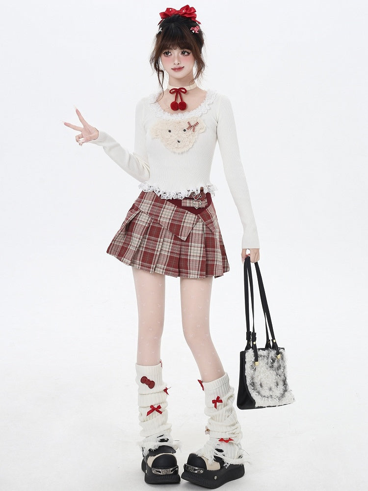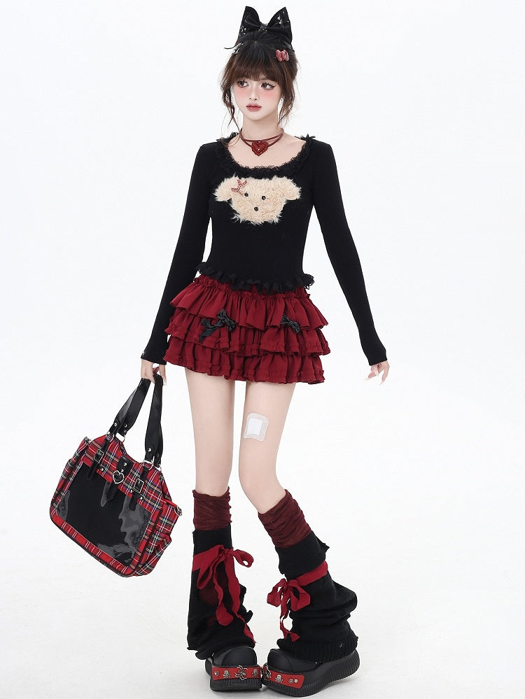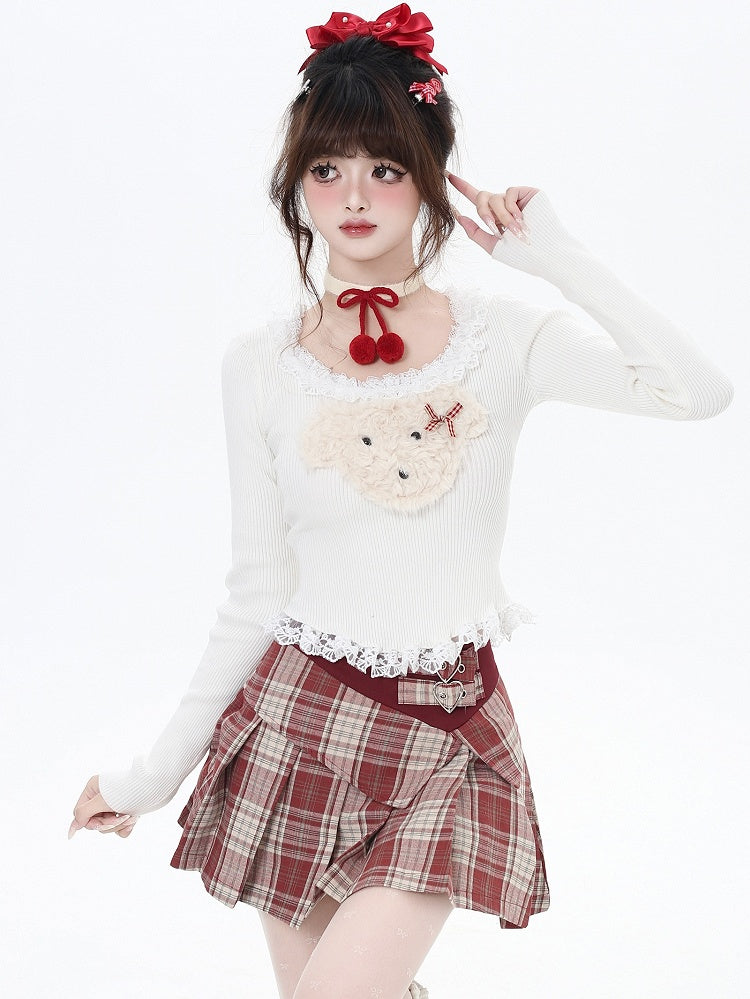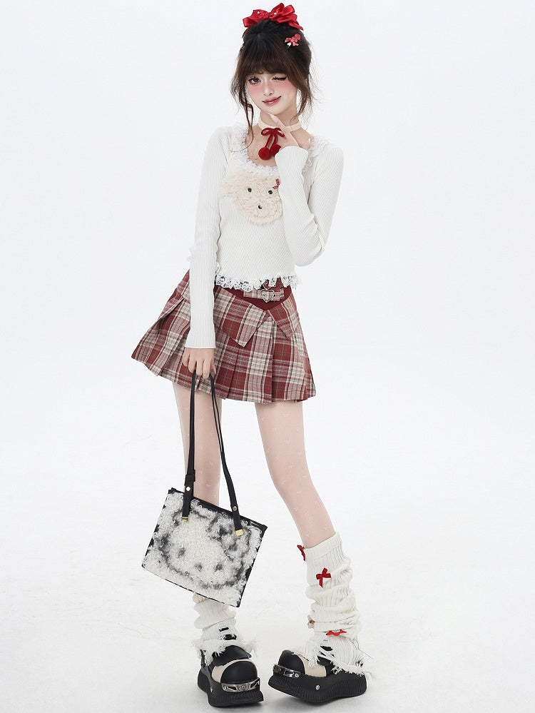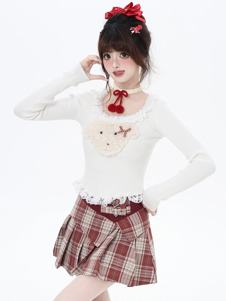 キュートなトップスは、愛らしい子犬のぬいぐるみのアップリケと繊細なレースのトリムが可愛らしいアクセントになっています。ホワイト、グレー、ブラックの柔らかなニット素材は、着心地の良さと着回し力に優れています。どんな装いにもチャーミングなアクセントを添えてくれます。
