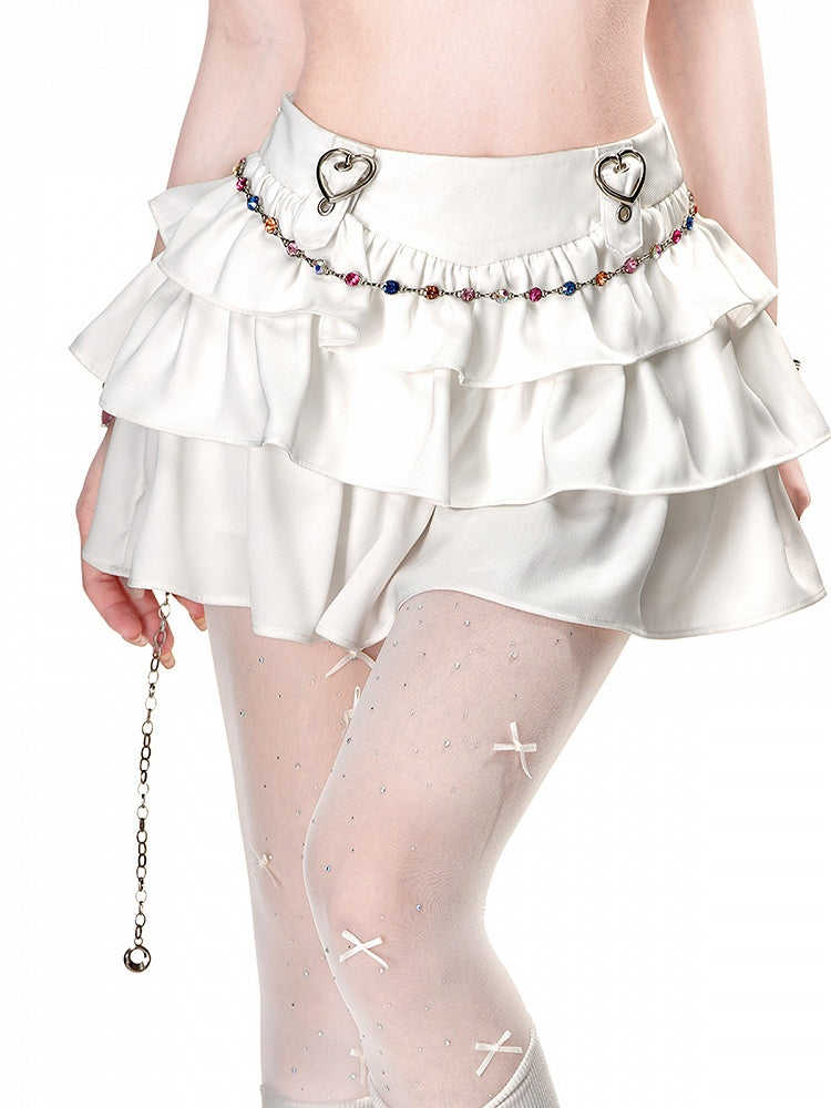 この愛らしいホワイトのハートバックルAラインティアードスカートで、魅力を放ちましょう。スタイリッシュなハートバックルがスカートに可愛らしさを添え、Aラインのカットとティアードデザインが美しいシルエットを演出します。どんなシーンにもぴったりのこのスカートは、あなたを素敵に引き立てます。