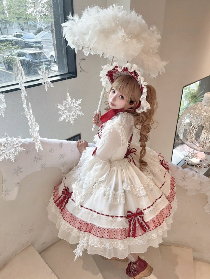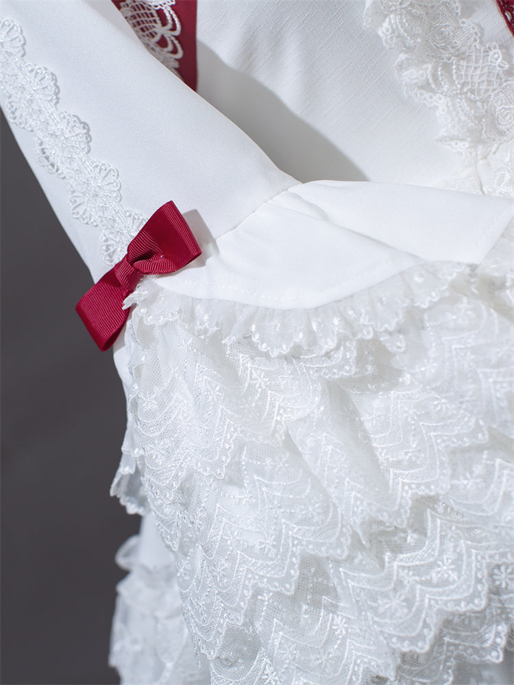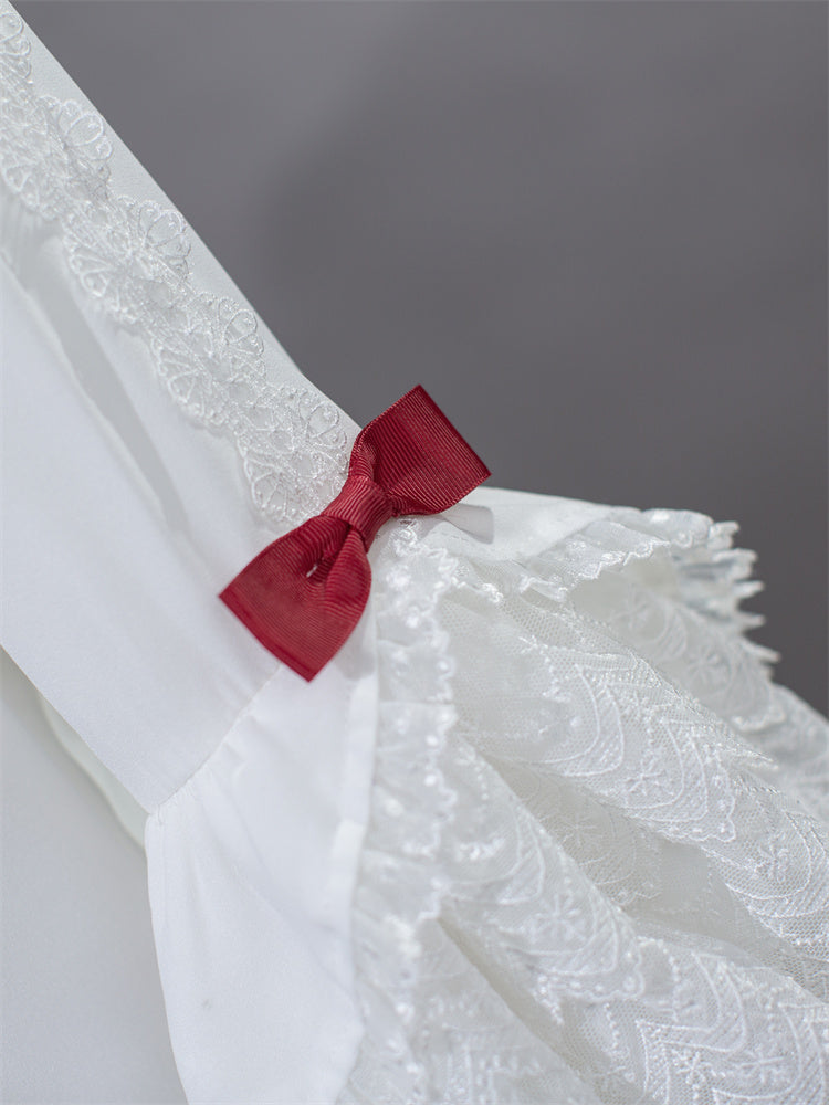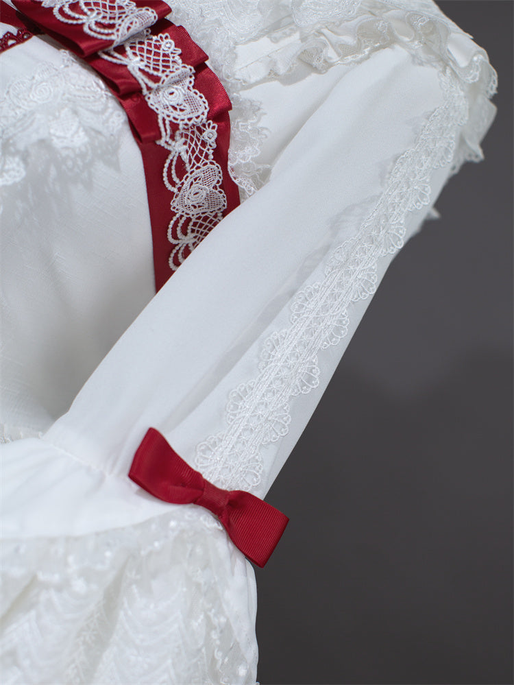 このキュートなホワイトレースの襟と重ね着レースのベルスリーブが特徴のロリータブラウスは、おしゃれに敏感な方ならマストハブアイテムです。繊細なレースの襟と重ね着ベルスリーブが、どんな装いにもフェミニンな雰囲気を添えてくれます。ワードローブにエレガントさと魅力をプラスするのに最適です。