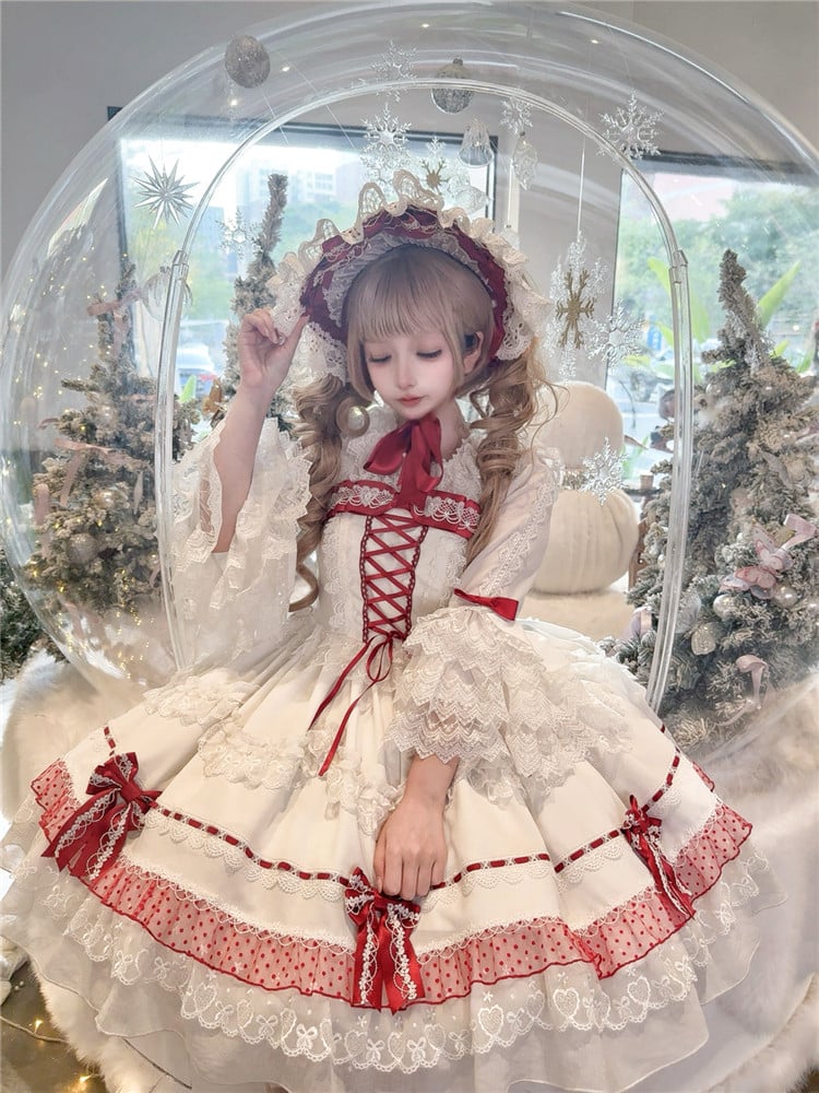 ピンクと白のオールドスクールロリータファッションドレス、蝶結びディテール、ロリータJSKセット