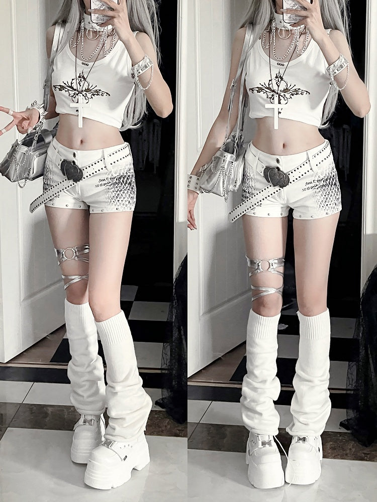 ホワイト ローライズ スネークスキンプリント ミニショーツ