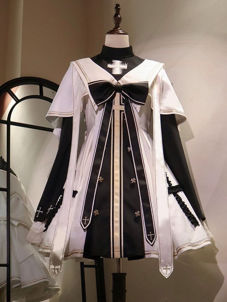 黒と白のオールドスクールロリータファッションドレス蝶結びロリータJSKセット