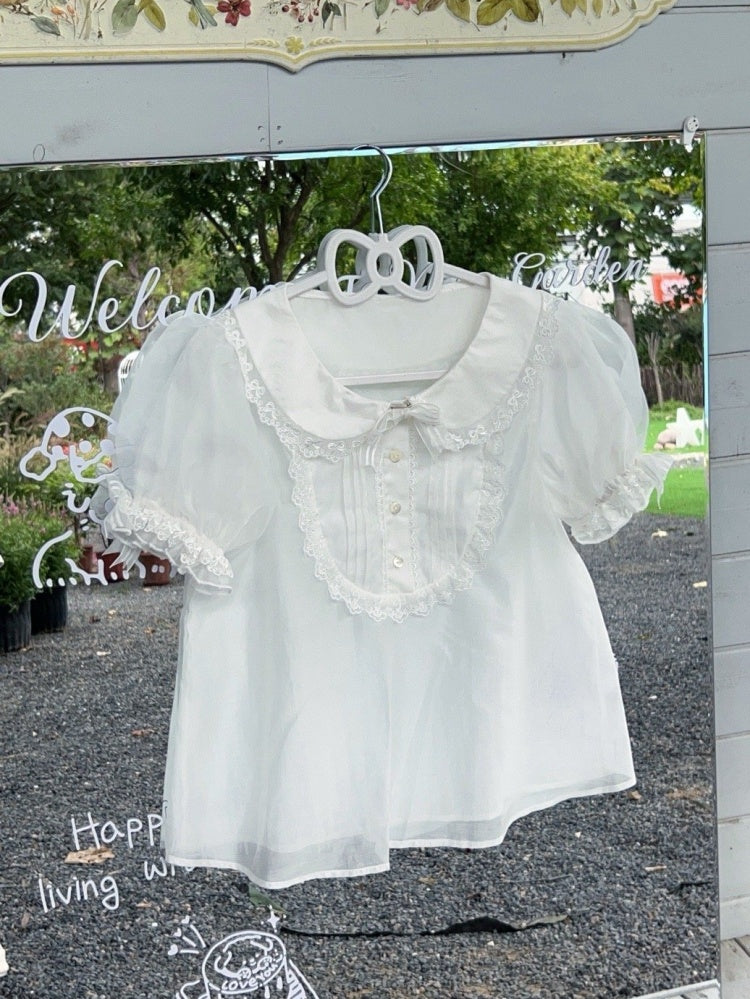 ホワイトのパフスリーブ、ピーターパンカラーブラウス