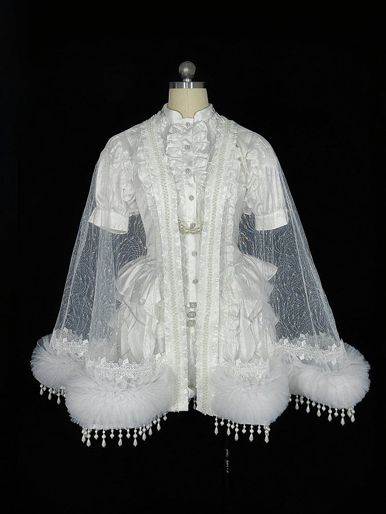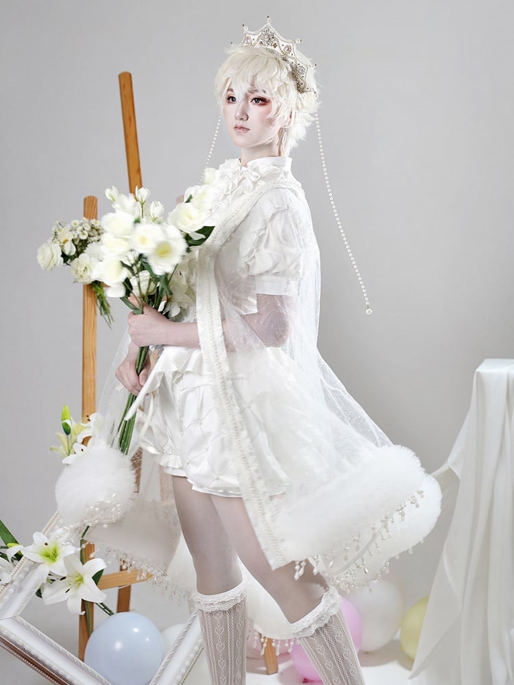 オールホワイト王子ロリータフルセット - 半袖シャツ + ハイウエストブルマーショーツ + ケーププリンス衣装