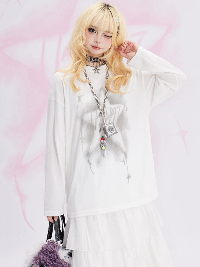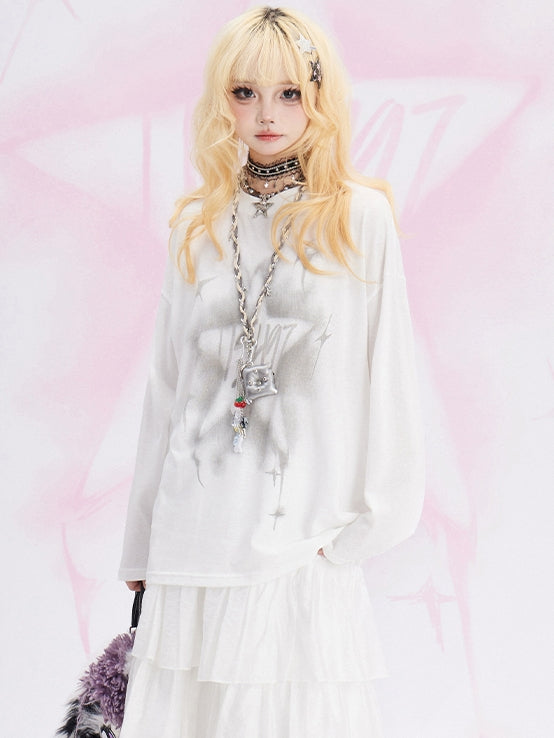 ホワイトスタープリント ルーズロングスリーブTシャツ