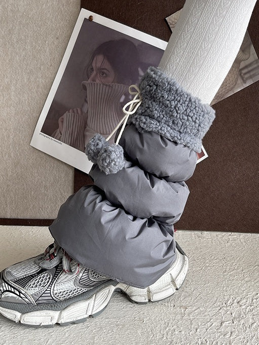 ポンポン付きホワイトのスイートな蝶結びレッグウォーマー