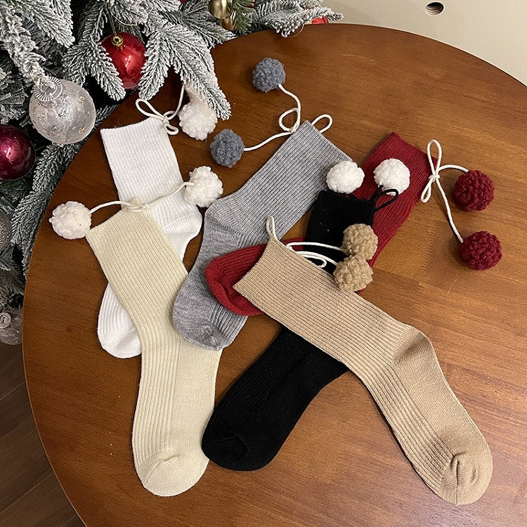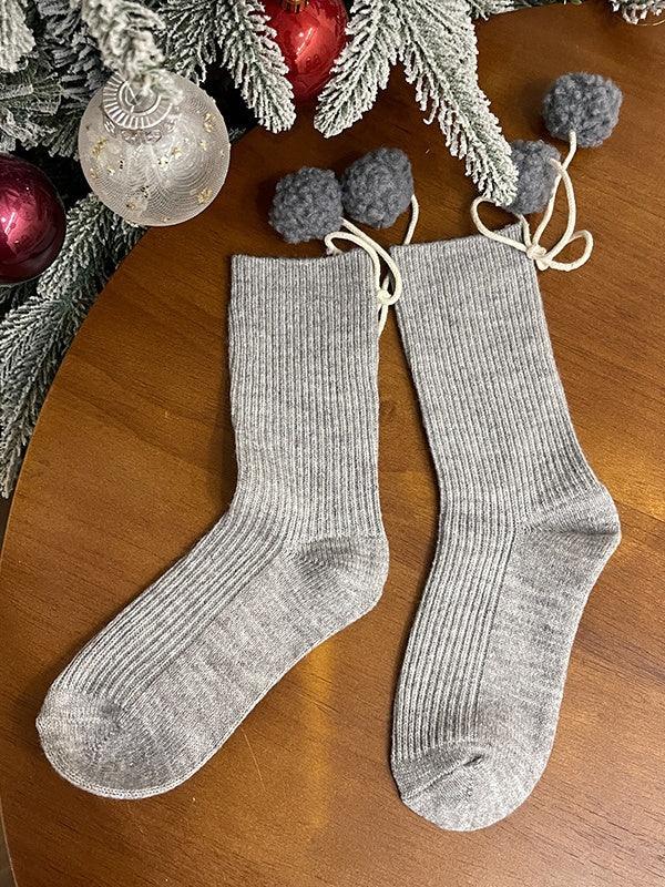 ポンポン付きホワイトスイートカーフソックス
