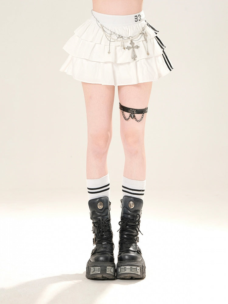 ホワイトのティアードスカート 裏地付き ブロケットコア