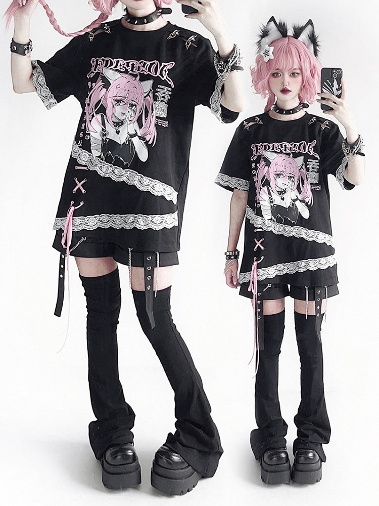 黒と白のオールドスクールロリータファッションドレス蝶結びロリータJSKセット