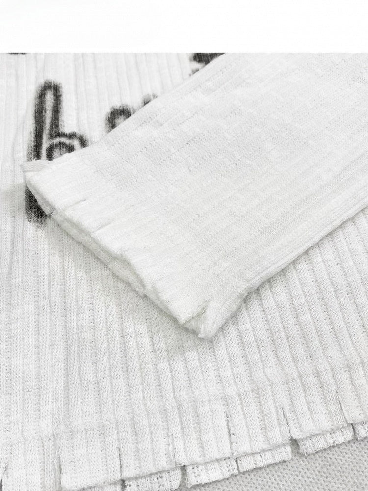 ホワイト Y2K トップスリーブデザイン アシンメトリーロングプリントネックライン +