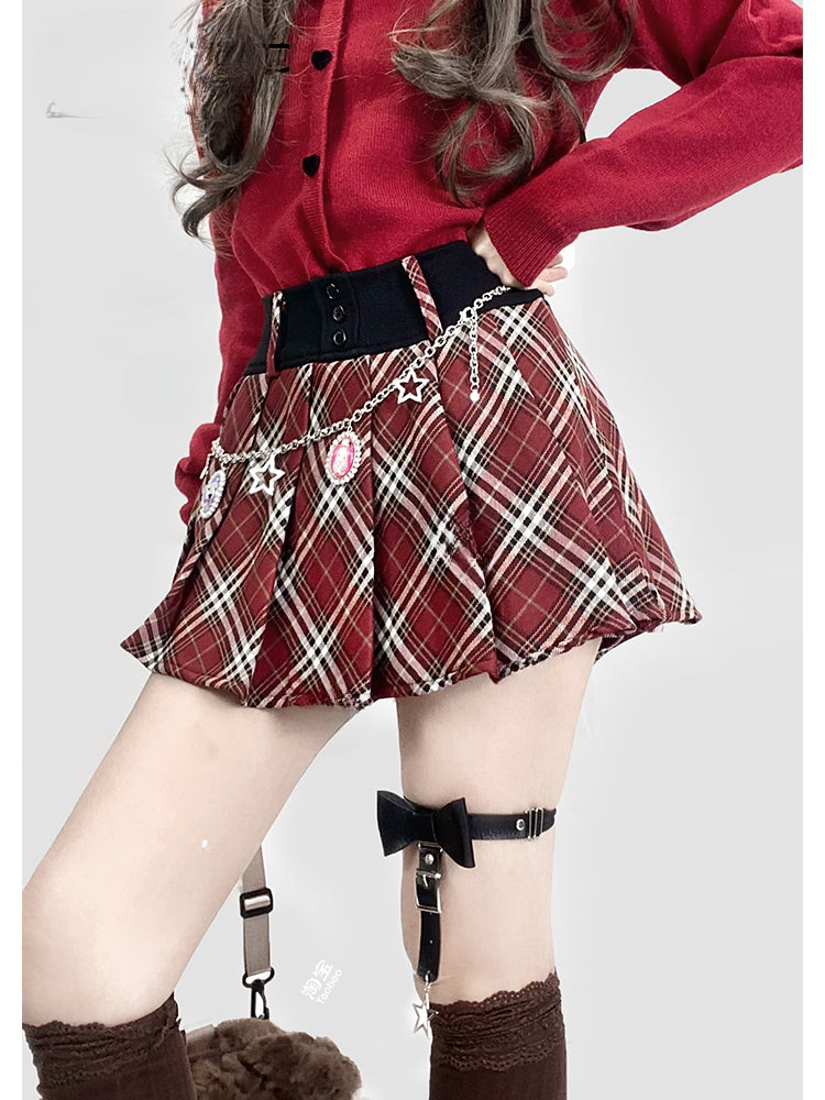 ワインレッドのチェック柄プリーツスカートで、ワードローブに鮮やかな彩りを添えてみませんか?愛らしい柄と美しいシルエットで、きっと注目を集めること間違いなし。どんなシーンにもぴったりのこのスカートは、スタイリッシュでありながら着回し力も抜群。きっと褒められるはずです!
