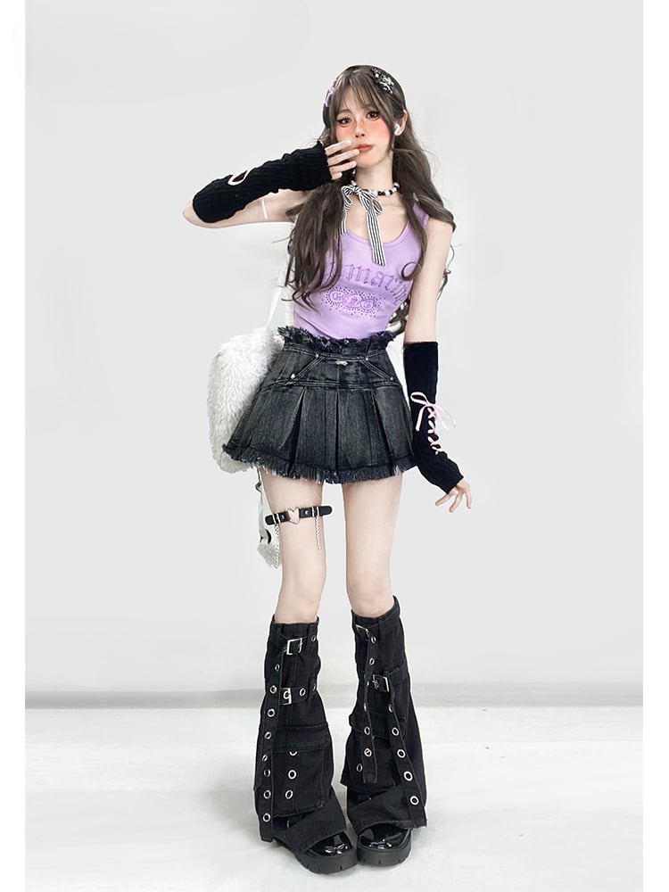 Y2Kヴィンテージのブラックフェードウォッシュデニムスカートは、どんなワードローブにもスタイリッシュでシックなアクセントを添えてくれます。ダメージ加工のトリムとボックスプリーツデザインが、モダンでありながらノスタルジックな魅力を放ちます。どんな装いにもキュートなアクセントを添えてくれます。