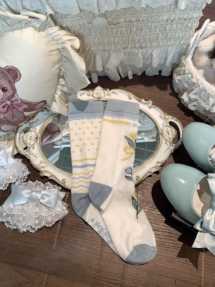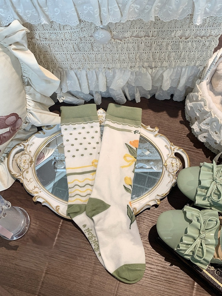 5 Options Tulip And Bow Pattern Calf Socks