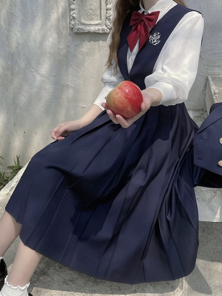 Blue and White Old School Lolita Fashion Dress Bowknot Detais JSK Set