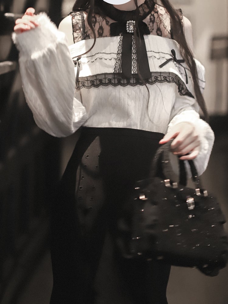 Aesthetic Shoulder Neckline Illusion Jirai with Contrast Pure Kei White Black - Innoncent Open and Sweater