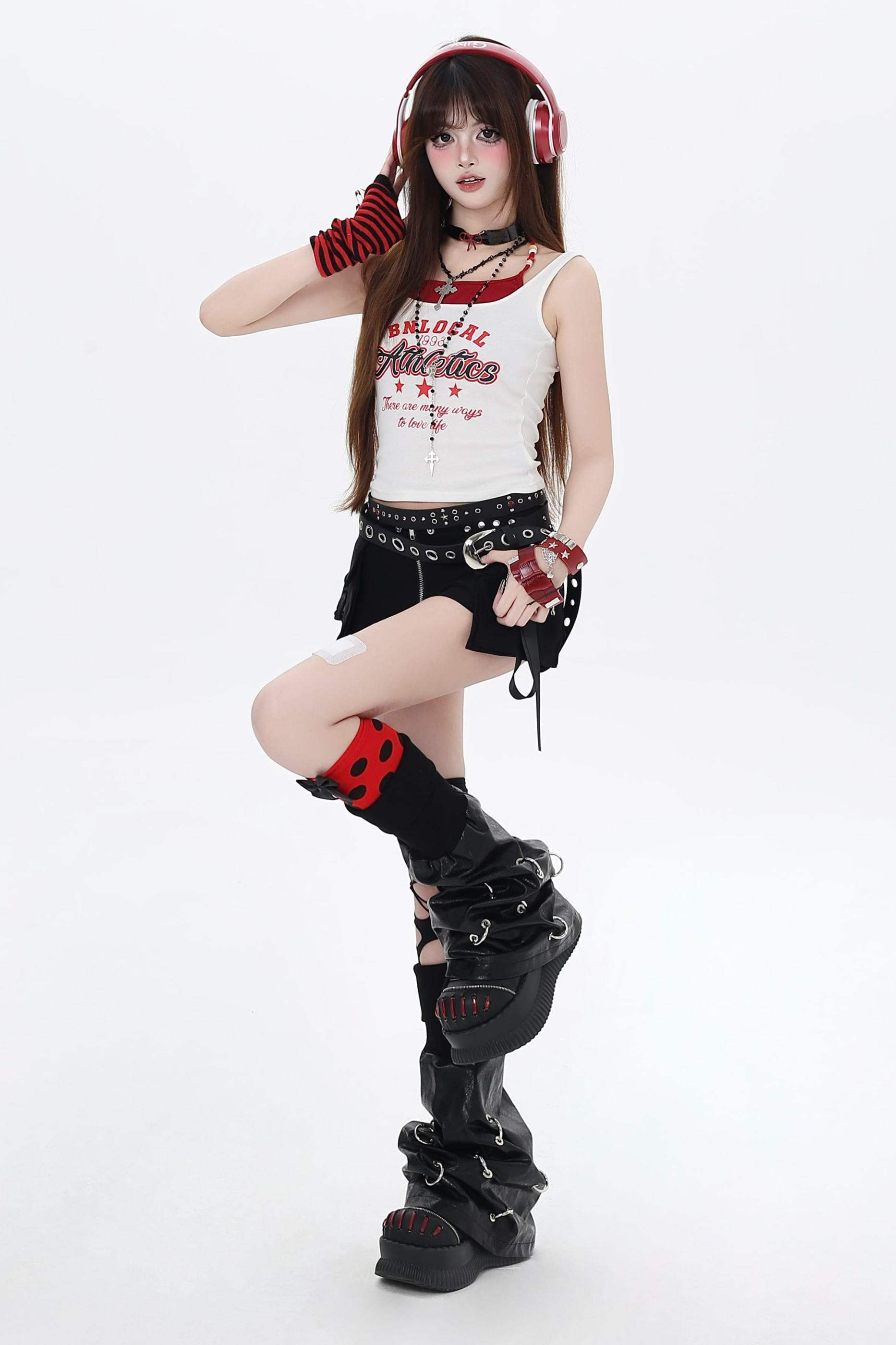 ❤American Retro Faux Two Piece Letter Print Hot Girl Camisole❤