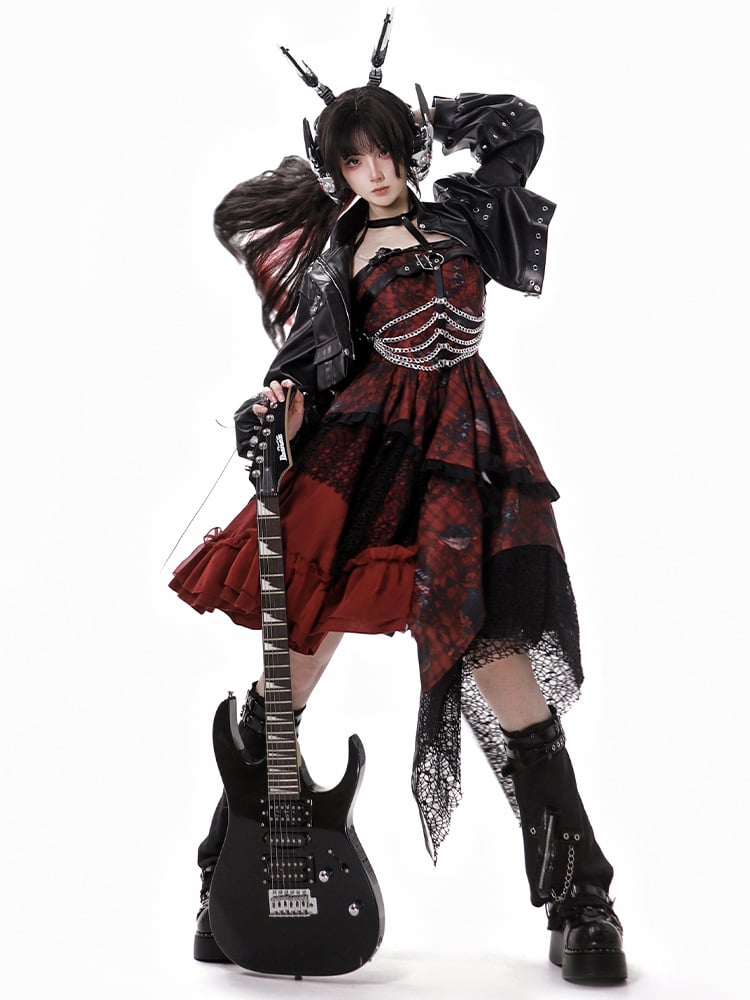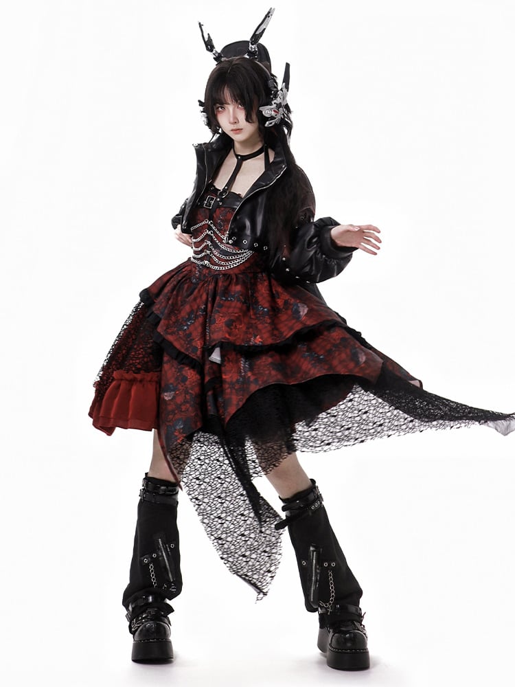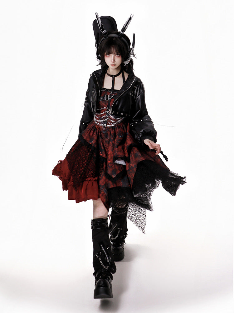 and Bishop Black Leather with Grommet Sleeves PU Details Cropped Jacket Front Zipper