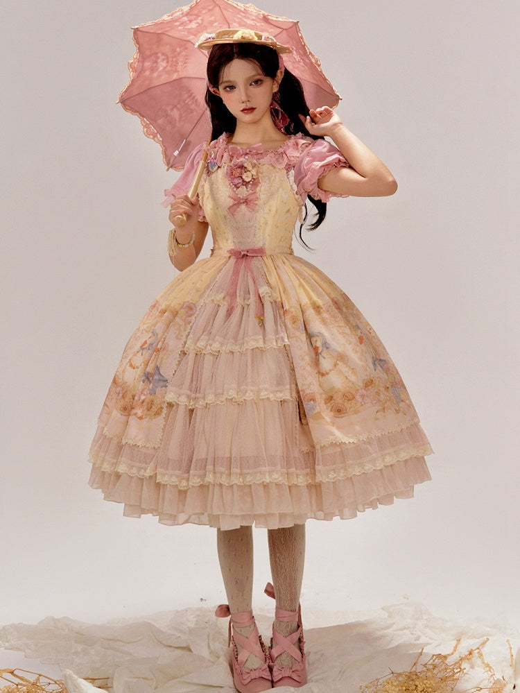 and Yellow Farm Print Sunflowers Jumper Sweet Skirt Lolita Ducks