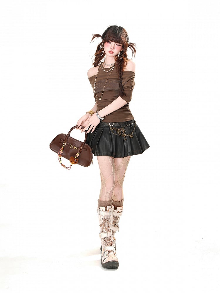 Apricot/Black/Coffee Halter Neck Cutout Shoulder Letter Glamorous T-shirt