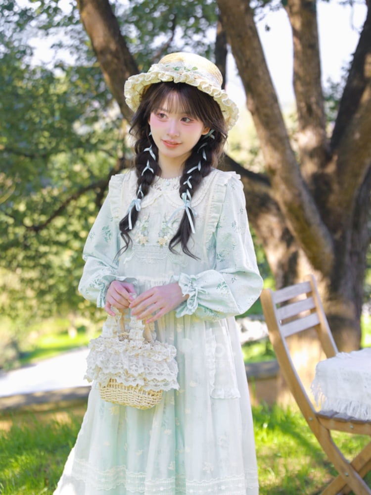 Blue and White Old School Lolita Fashion Dress Bowknot Detais JSK Set