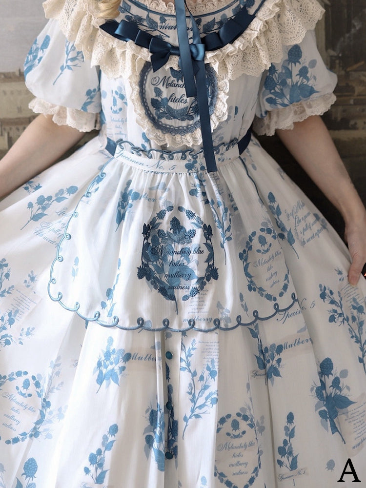 Blue and White Old School Lolita Fashion Dress Bowknot Detais JSK Set