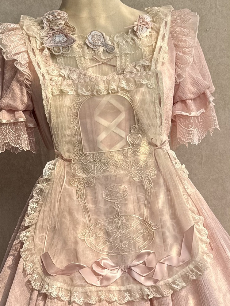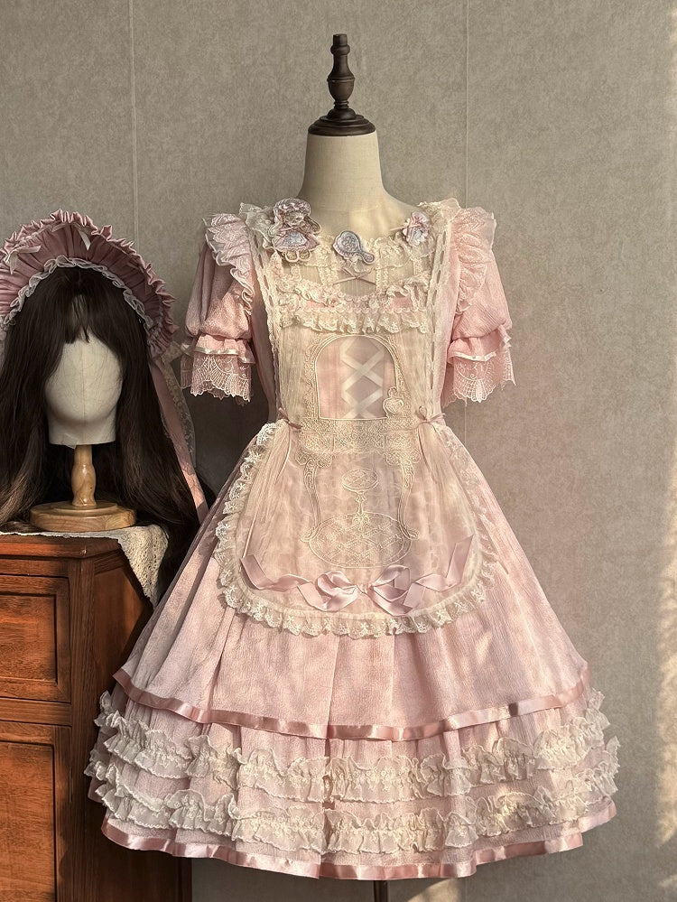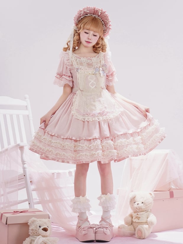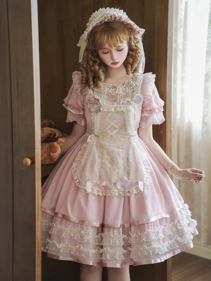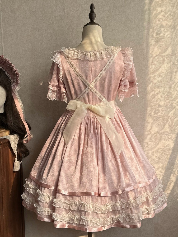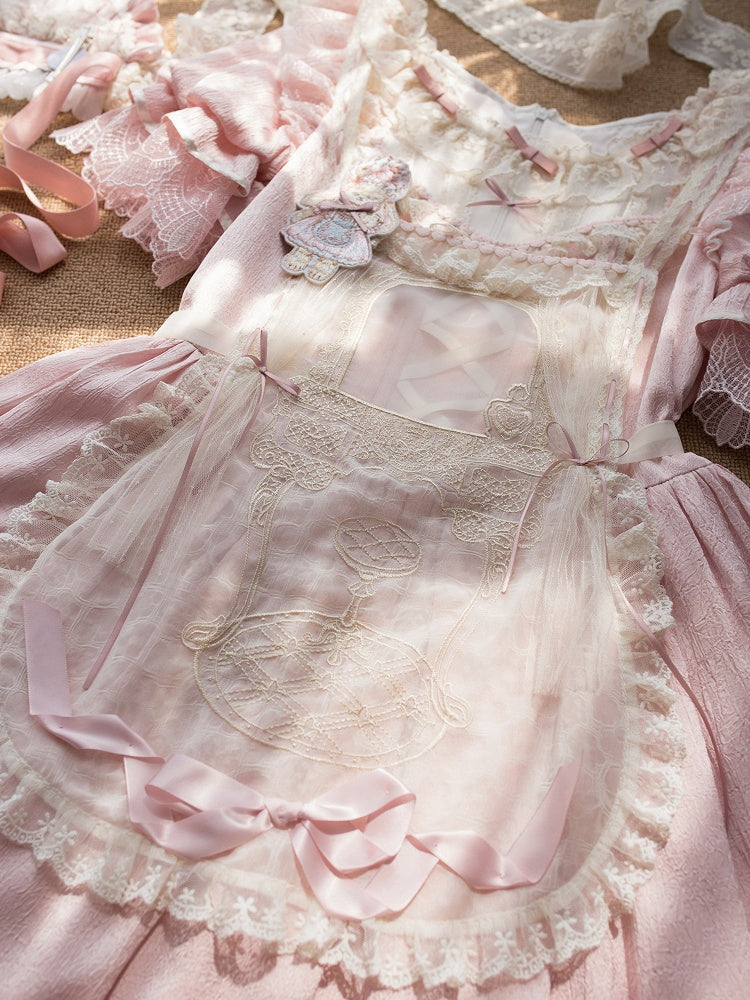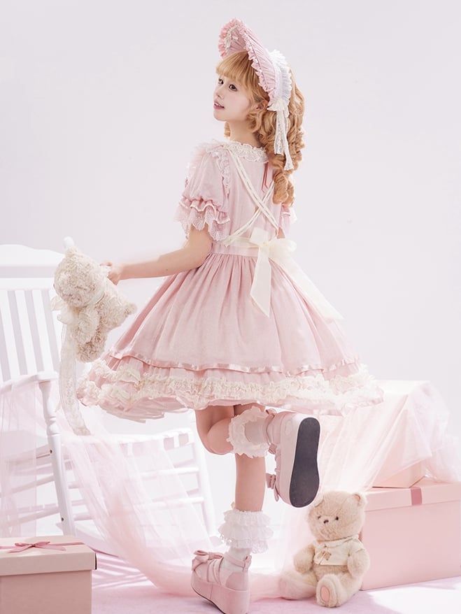 Pink and White Old School Lolita Fashion Dress Bowknot Detais Lolita JSK Set