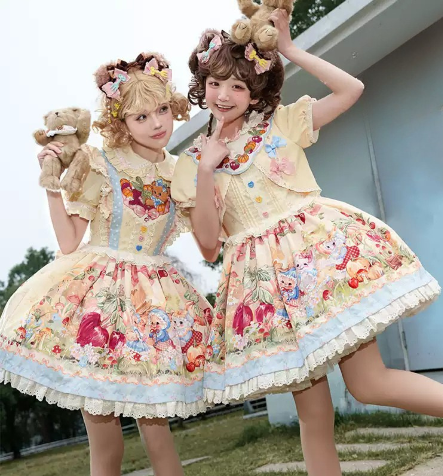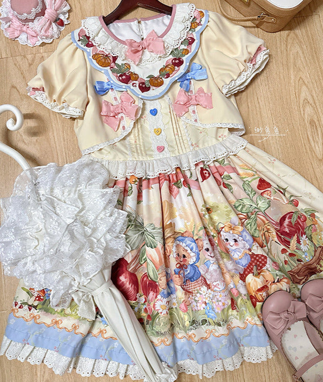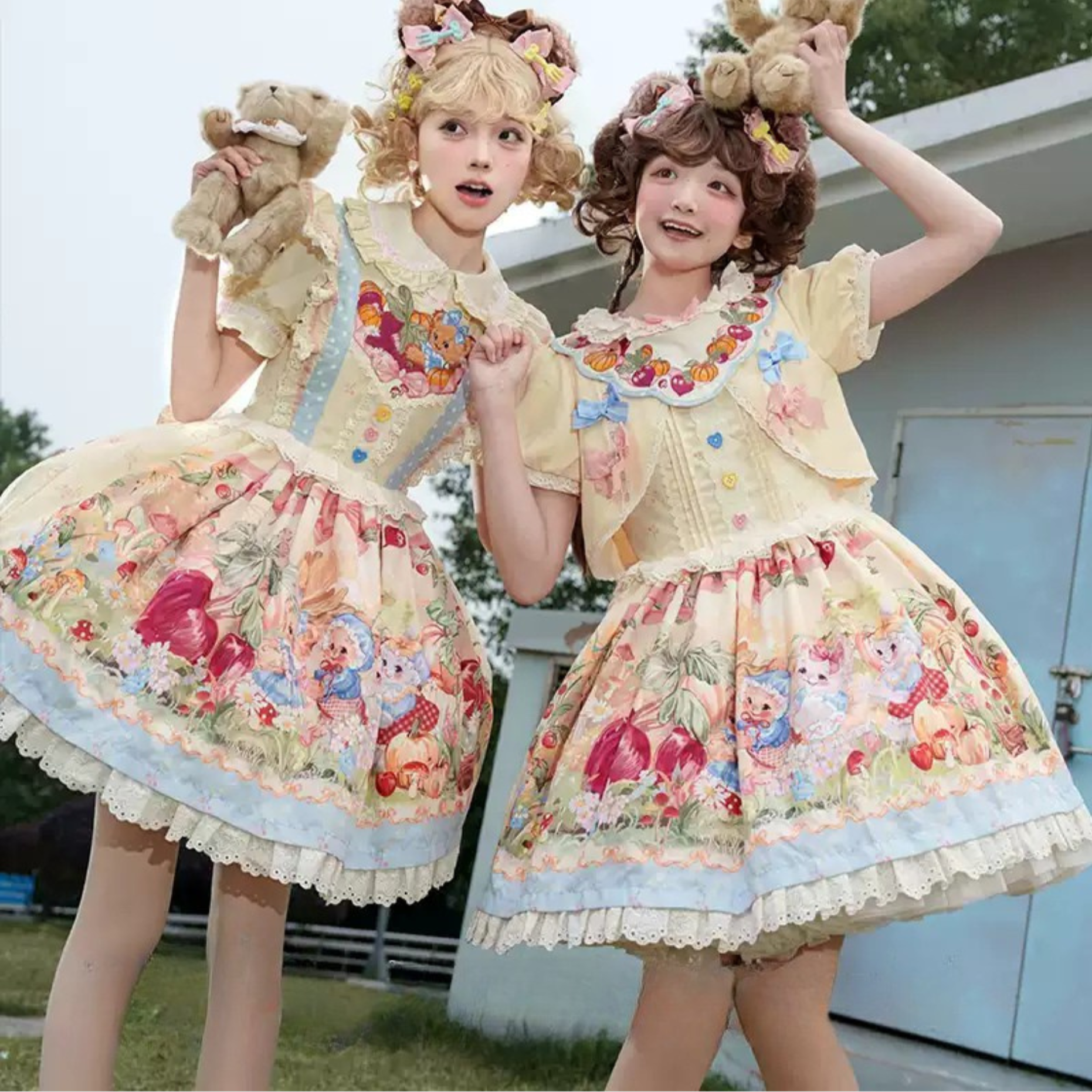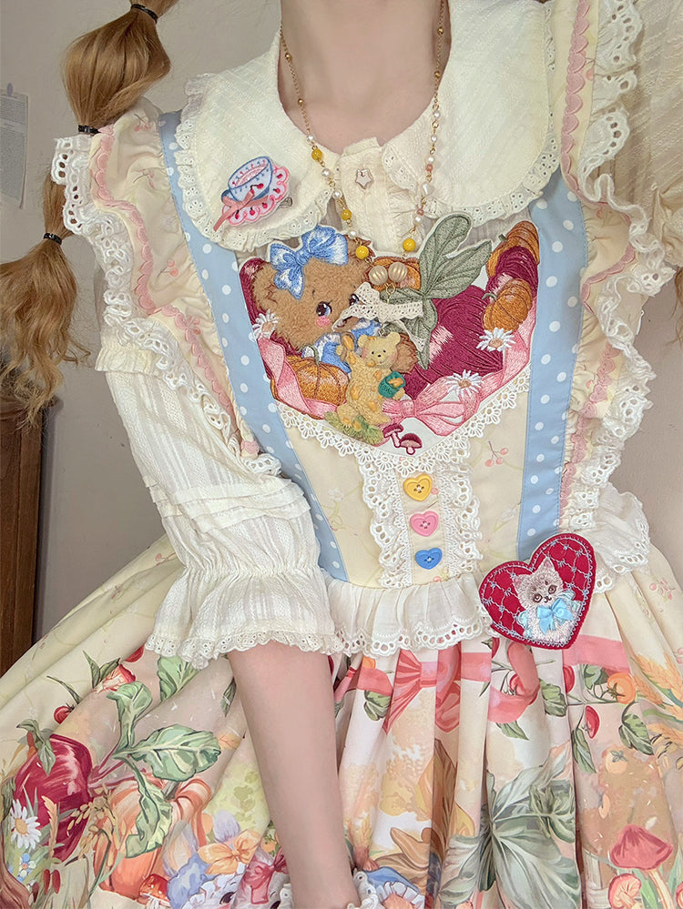 ❤︎ 【Reservation Item】Carrot Print Layered Dress + Suspender Dress + Apron❤︎ ⚠️It may take up to 4 months for delivery due to the popularity of this product.