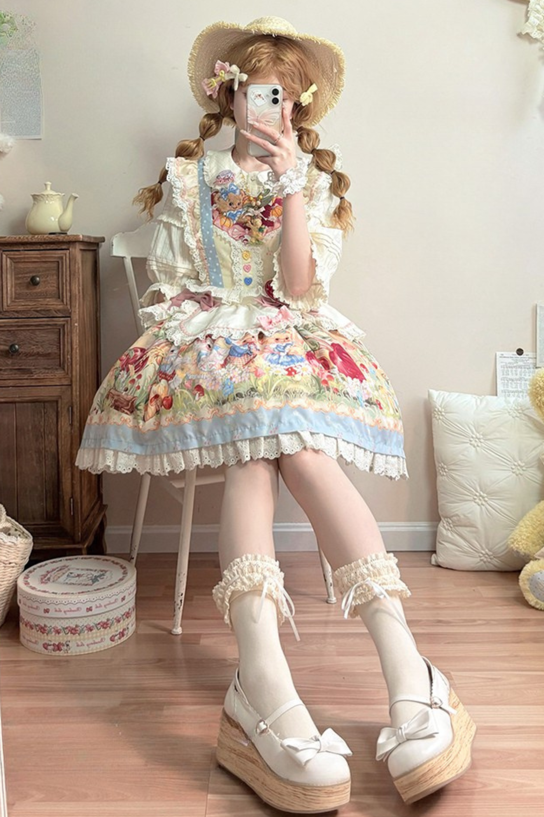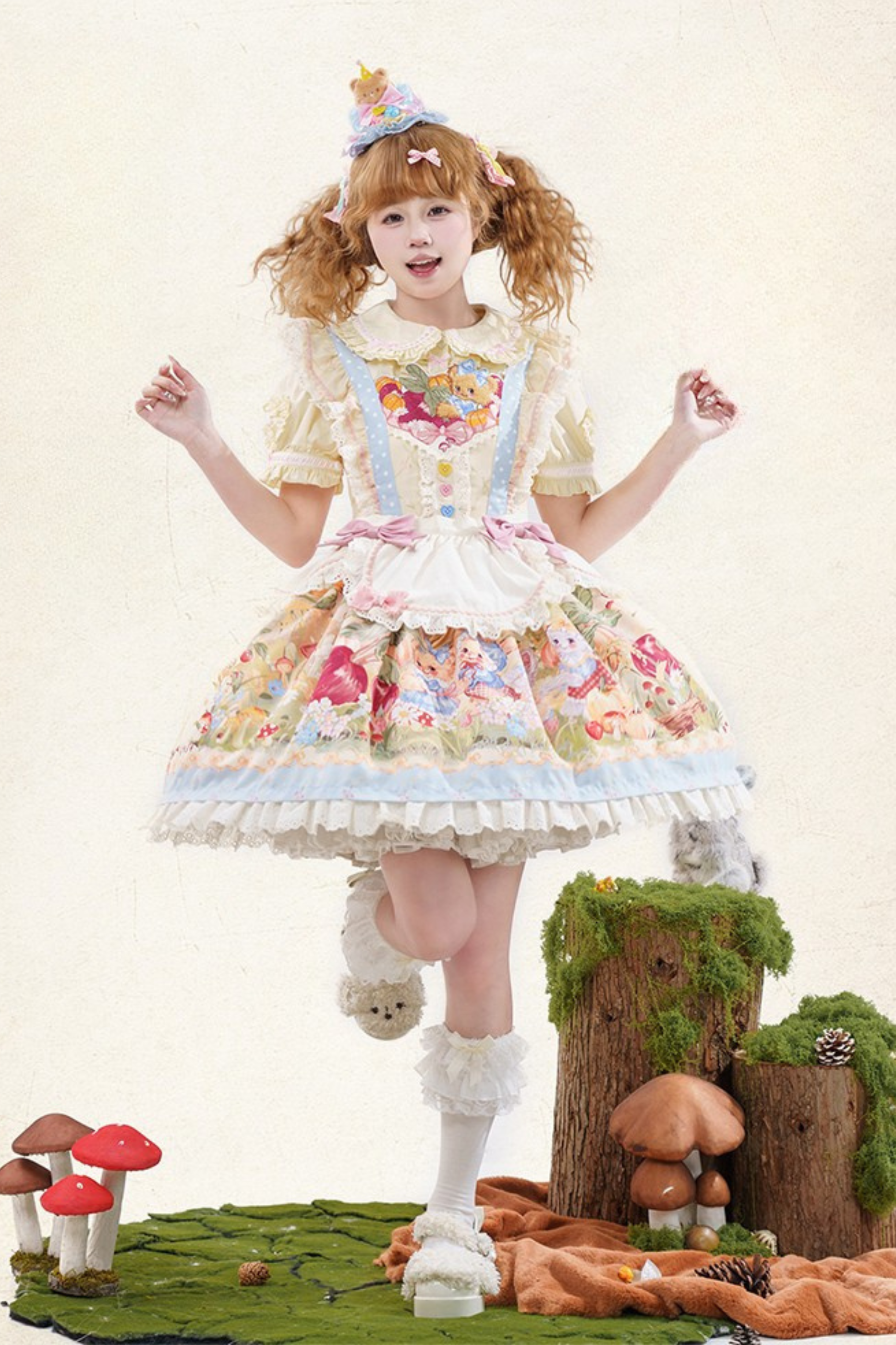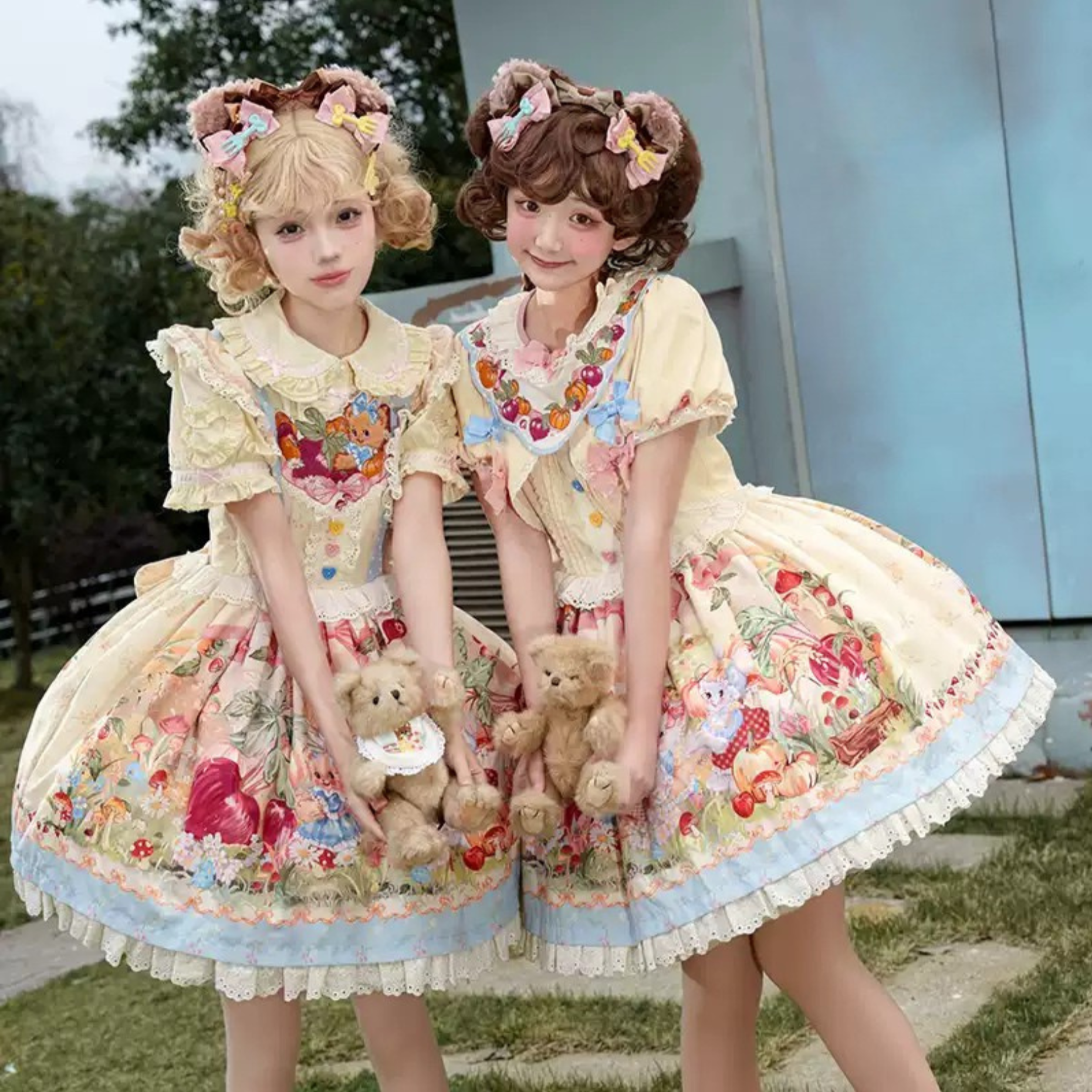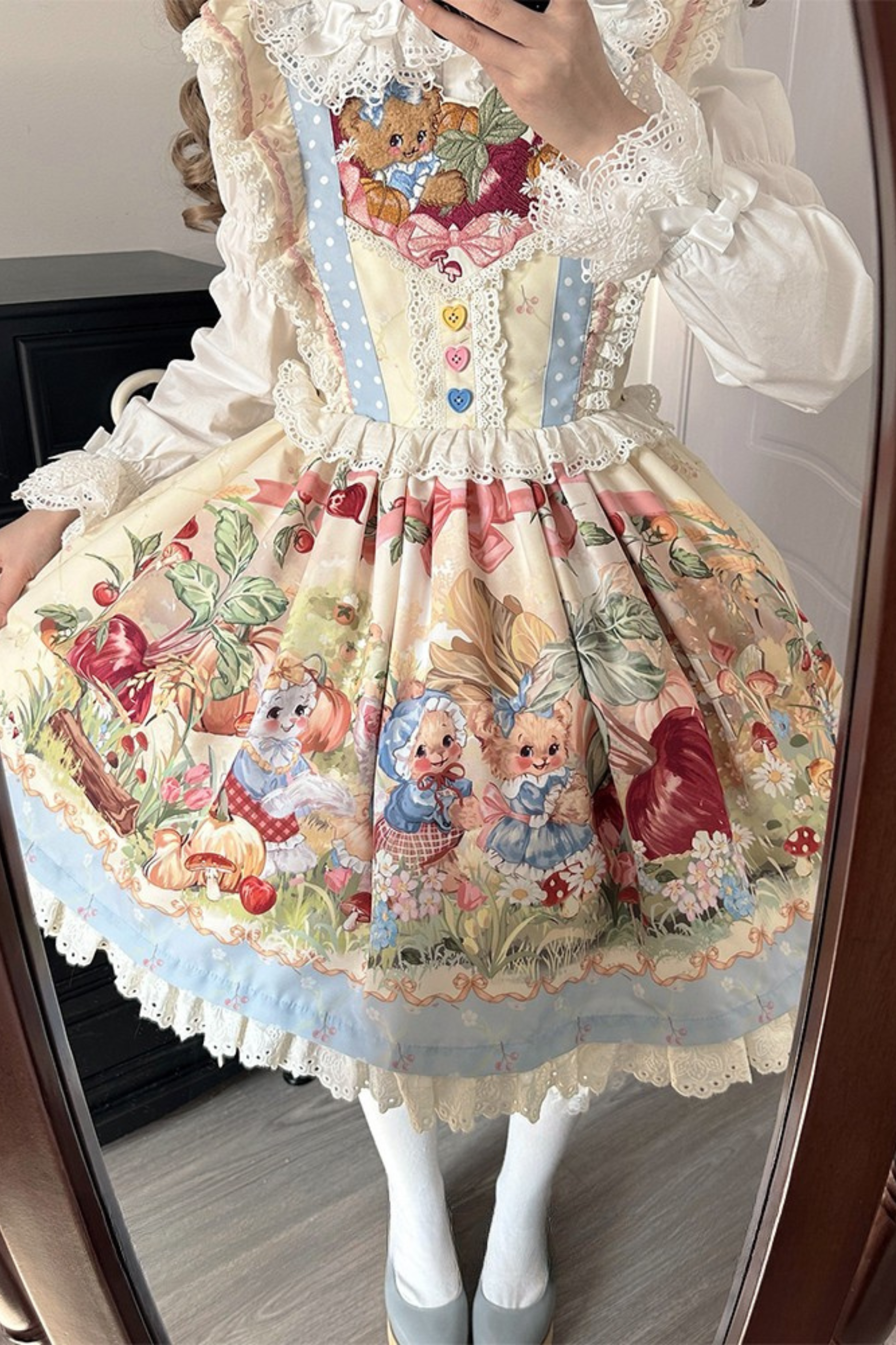 ❤︎ 【Reservation Item】Carrot Print Layered Dress + Suspender Dress + Apron❤︎ ⚠️It may take up to 4 months for delivery due to the popularity of this product.
