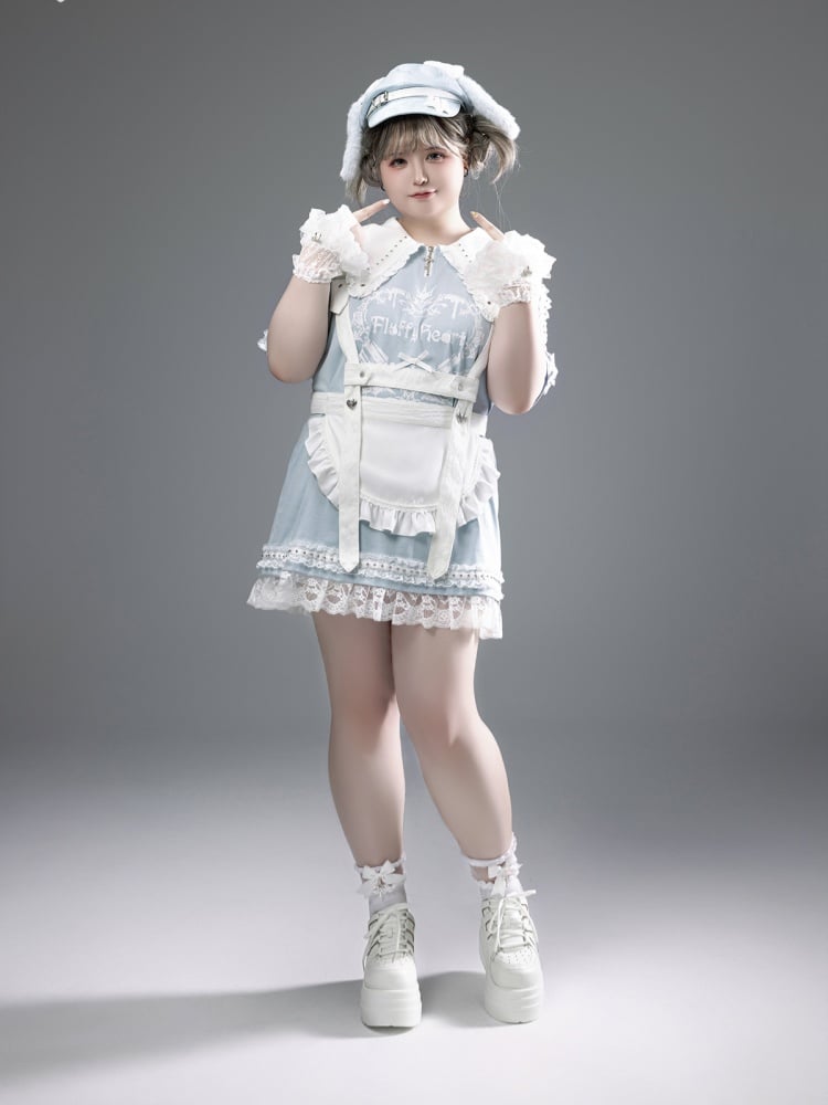 Apron Shoulder Straps White Self-tie Bow Back Ruffle Trim Adjustable