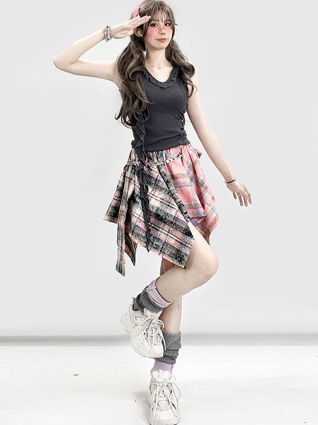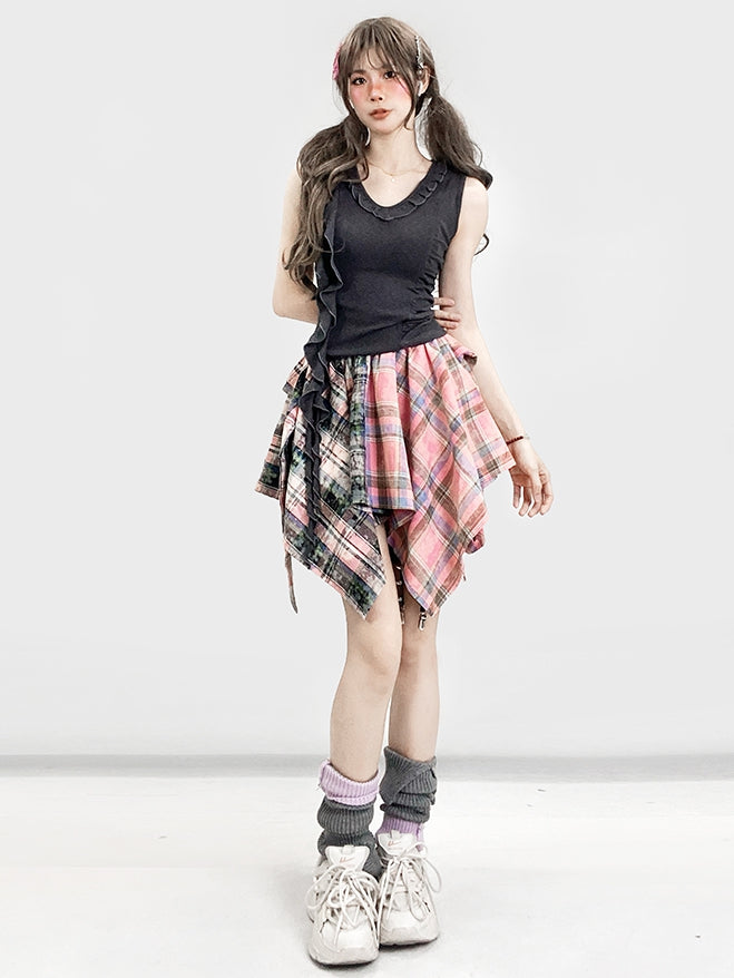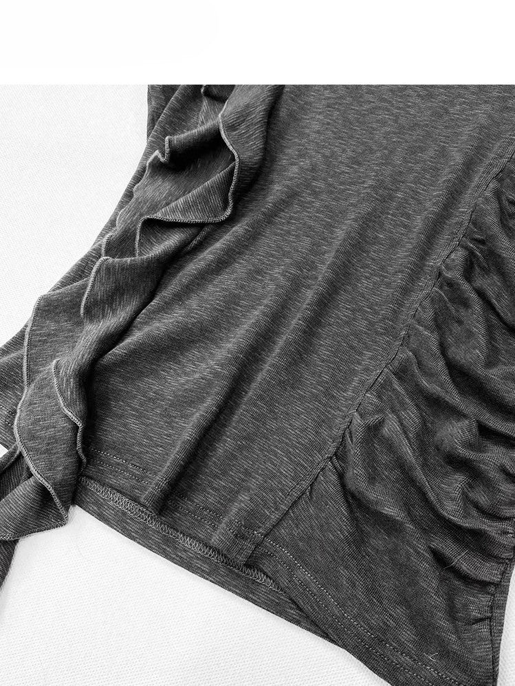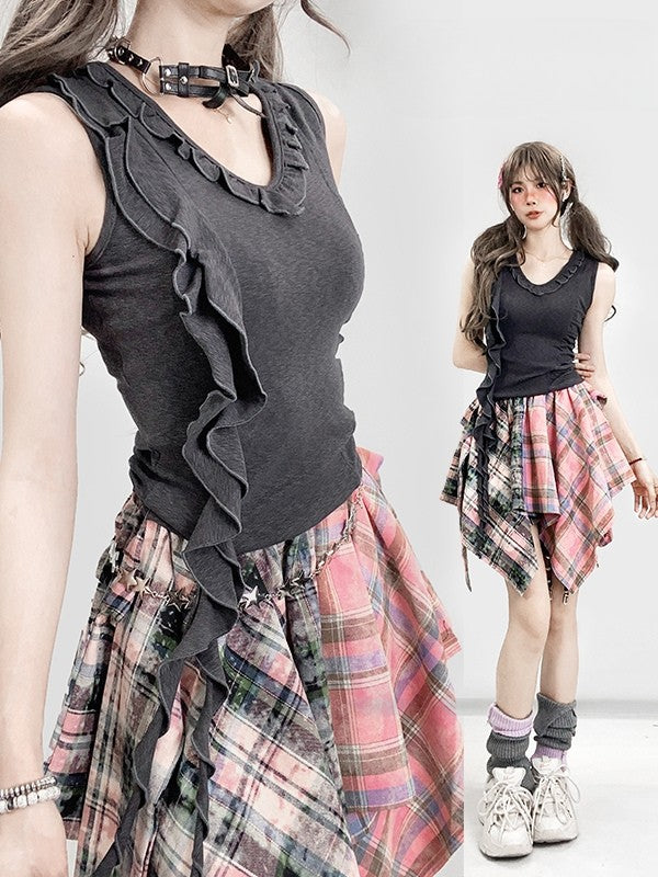 Gray Bittersweet Glamorous Ruffles Trim Asymmetrical Hem Sleeveless Top
