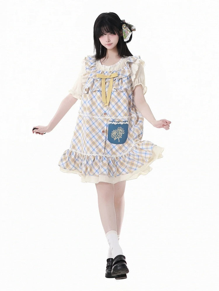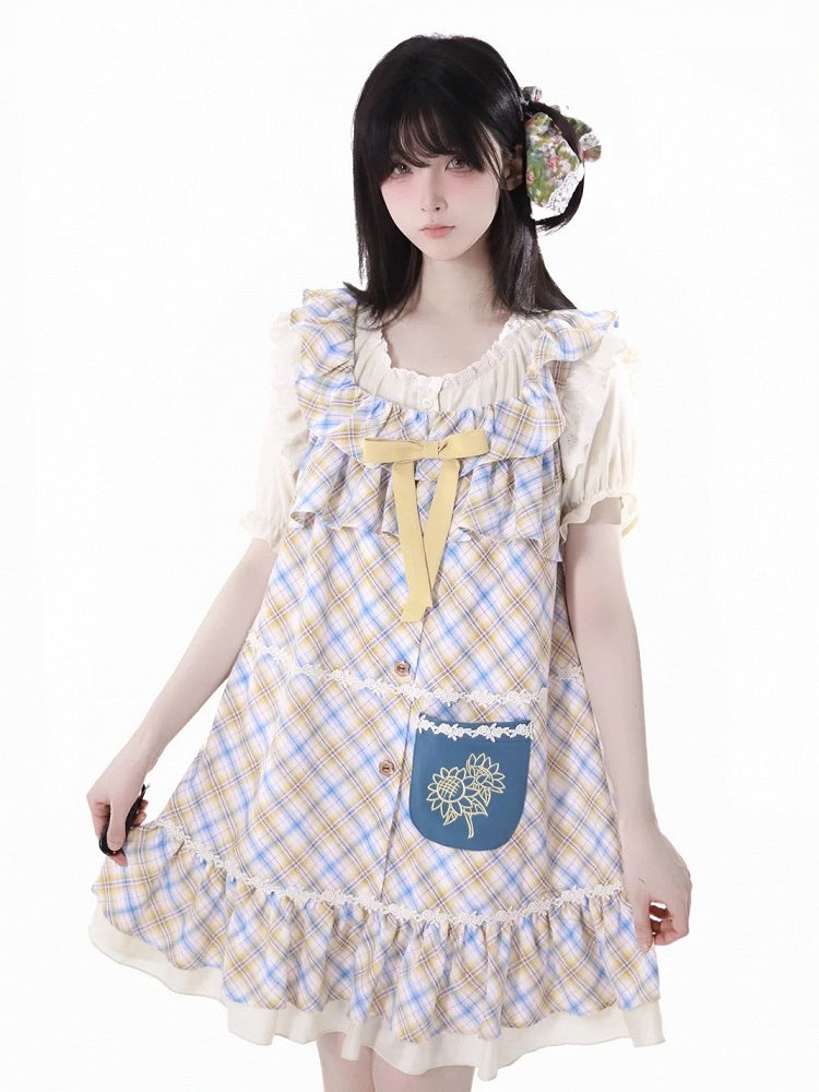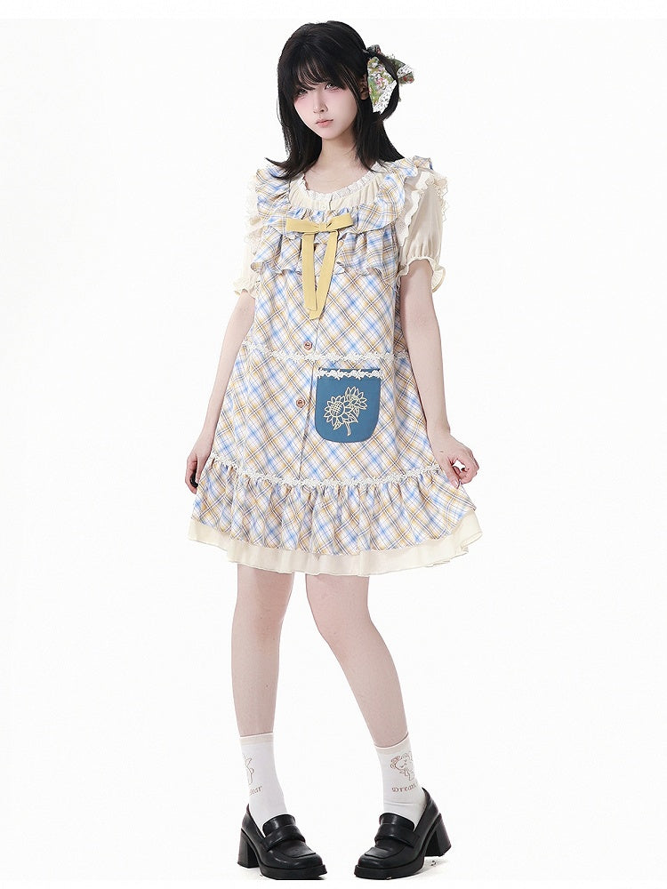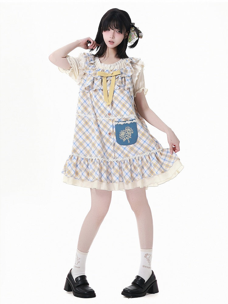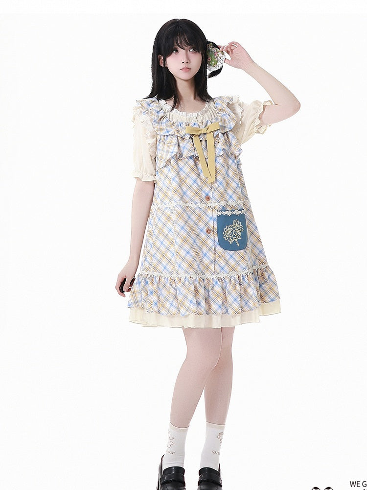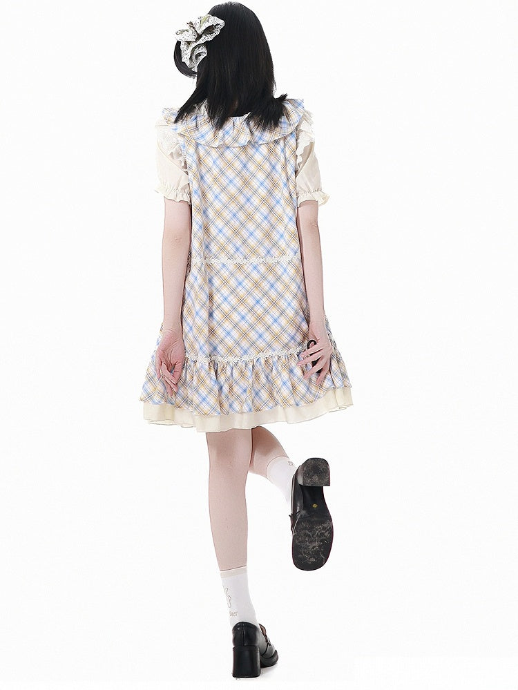 Blue and White Old School Lolita Fashion Dress Bowknot Detais JSK Set
