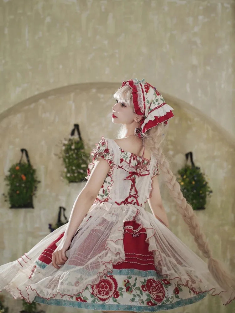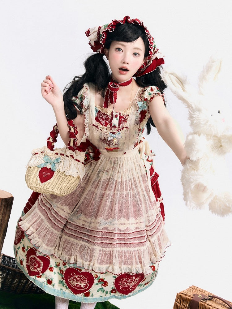 Pink and White Old School Lolita Fashion Dress Bowknot Detais Lolita JSK Set